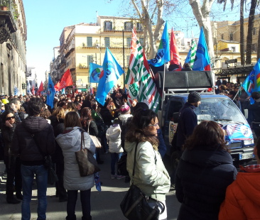 PALERMO – C’era chi suonava la marcia funebre e chi intonava canzoni e cori da stadio. C’erano striscioni, fischietti, megafoni, costumi. Non fosse stato per la gravità delle ragioni si poteva pensare a una sfilata di Carnevale osservando l’imponente manifestazione che pochi giorni fa ha portato in strada più di tremila lavoratori di Almaviva, il colosso dell’outsorcing e della comunicazione (nella sola Palermo serve compagnie del calibro di Enel, Tim, Wind, Skype e Alitalia) che da qualche anno soffre, al pari di altre aziende, la crisi economica e ha deciso per questo di tagliare dalla voce uscite gli affitti delle due sedi di Palermo, in via Cordova e in via Marcellini. Che questo debba avvenire senza sanguinosi tagli dell’organico l’azienda lo ha più volte ribadito attraverso dichiarazioni e note ufficiali, rilanciando anzi il proposito di trasferire nel capoluogo siculo la sede legale, fermo restando la richiesta, già espressa a più riprese, che la Regione Siciliana possa offrire una sede alternativa a costi contenuti.
