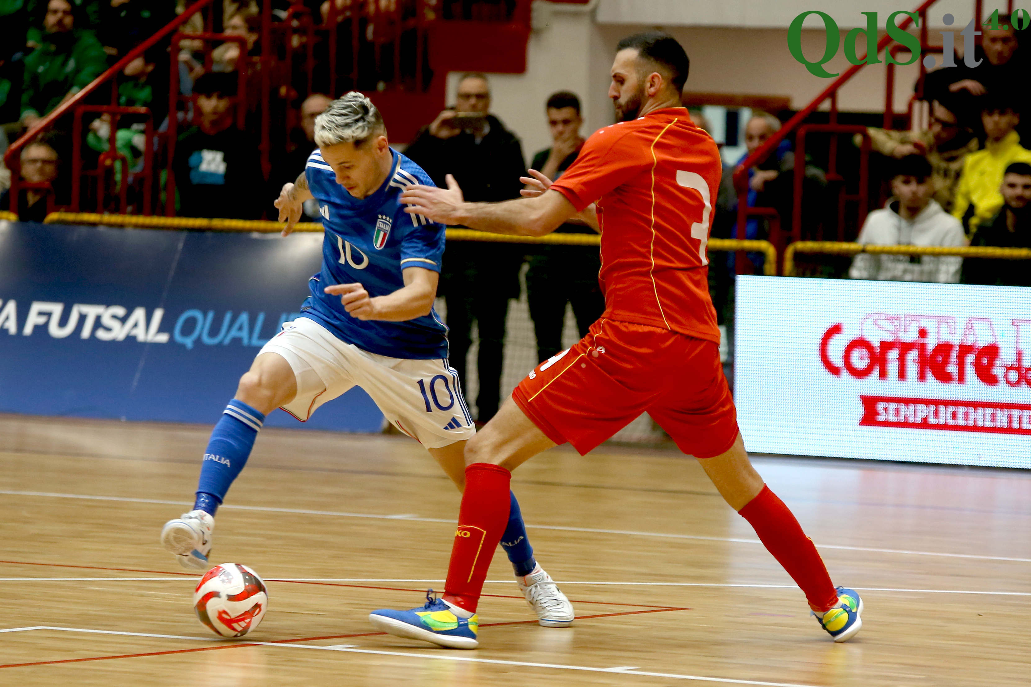 L’Italia di calcio a 5 vince contro la Macedonia del Nord e si avvicina alla qualificazione mondiale di Futsal 2024. La nazionale italiana allenata da Massimiliano Bellarte prima nel suo girone con 4 punti, seguita dalla Svezia con 3 e dalla Macedonia con 1 punto, parte forte nella prima frazione di gioco portandosi in vantaggio con Cutrupi. La prima frazione finisce 3-2 per l’Italia.