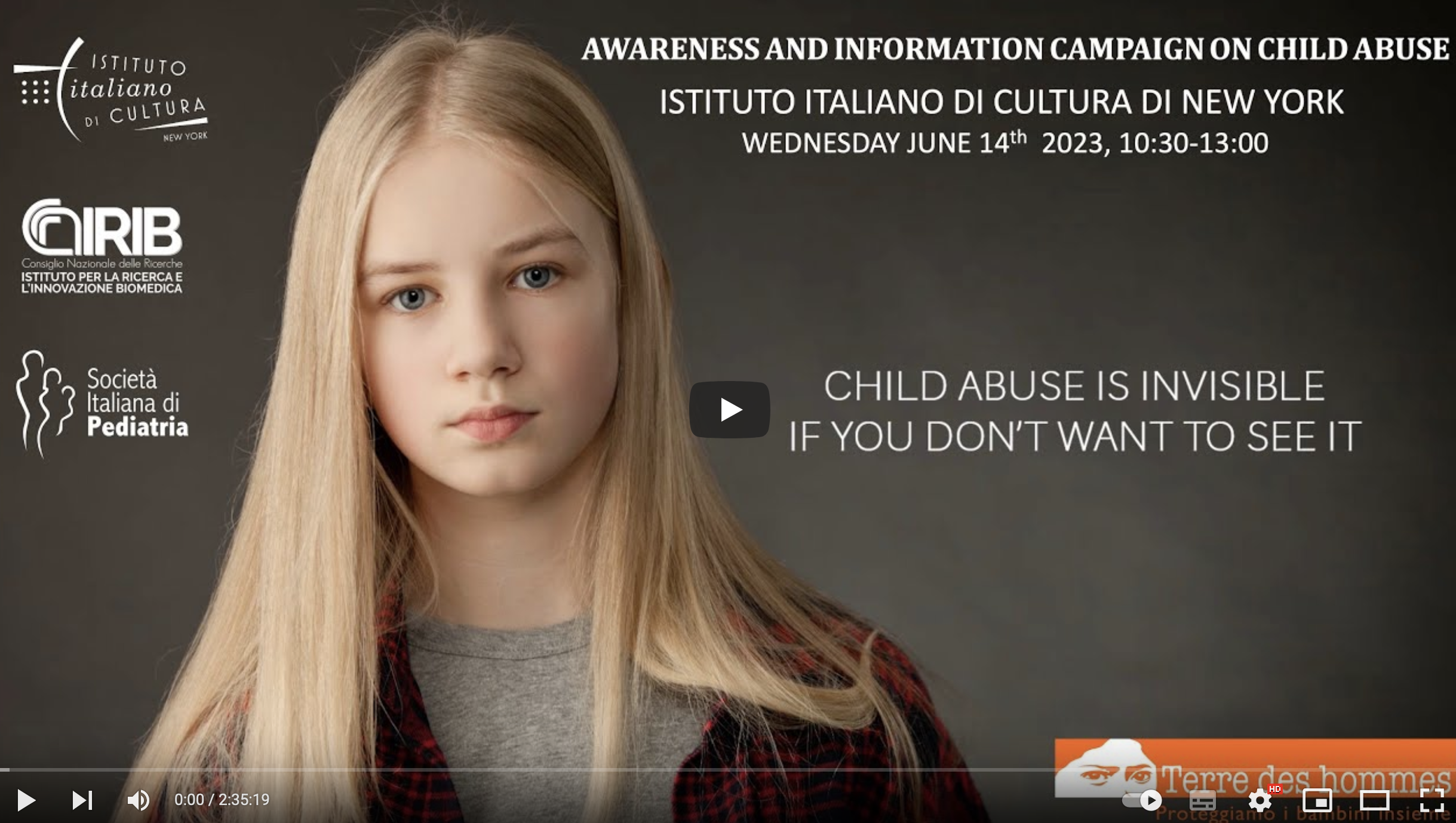 A partire dal mese di dicembre 2022, il CNR IRIB sede di Catania, insieme alla Società Italiana di Pediatria e alla Fondazione Terre des Hommes, daranno avvio ad una Campagna nazionale di sensibilizzazione contro gli Abusi sui Minori (Progetto Terza Missione CNR IRIB), che prevede la produzione di un manifesto a stampa lenticolare, un video spot, materiali editoriali e contenuti digitali, che includono un’immagine ed un messaggio sociale rivolto alla sensibilizzazione e prevenzione degli Abusi sui Minori. Tale iniziativa, alla quale hanno aderito anche la Società Italiana di Neurologia Pediatrica e la Scuola di Specializzazione in Ortopedia della nostra università, verrà presentata in data 1° dicembre 2022 alla Sala del Cenacolo della Camera dei Deputati.