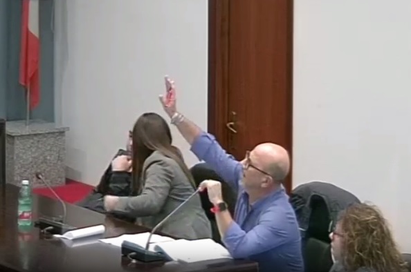 Durante un’animata discussione scoppiata tra i banchi e la presidenza, il consigliere comunale di minoranza Giuseppe Montesano di Liberi e Forti ha gridato “Heil Hitler” e ha mostrato il braccio teso in segno di protesta.