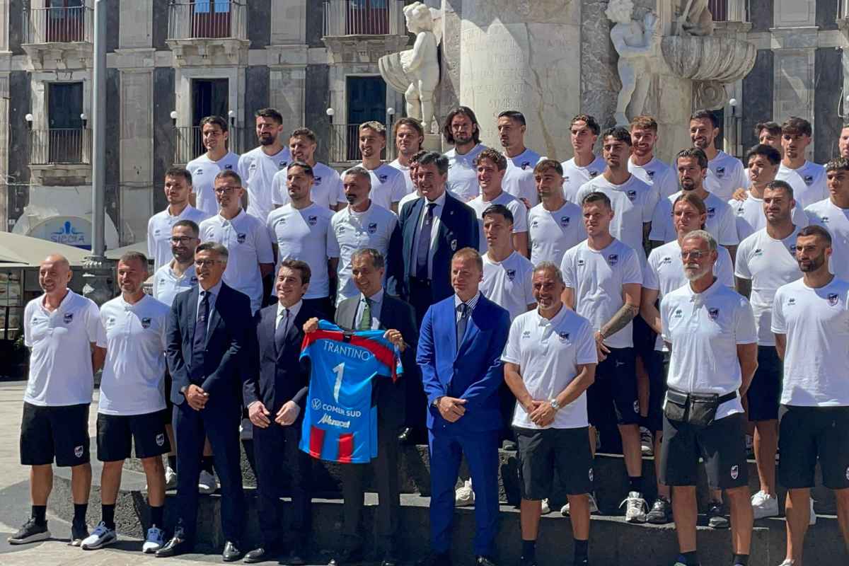 Giornata di presentazione istituzionale e ufficiale per il Catania FC che si è presentato a “Palazzo degli Elefanti” nelle sue migliori vesti insieme al Vicepresidente Vincenzo Grella, al sindaco di Catania Enrico Trantino e all’assessore allo Sport Sergio Parisi. Presenti tutti i calciatori in rosa, lo staff sanitario e tecnico, l’allenatore Domenico Toscano e il Direttore Sportivo Ivano Pastore.