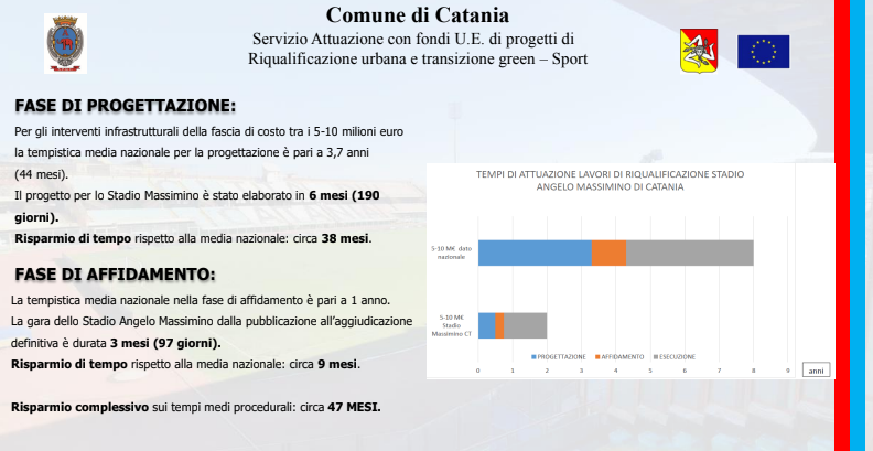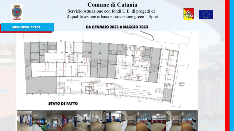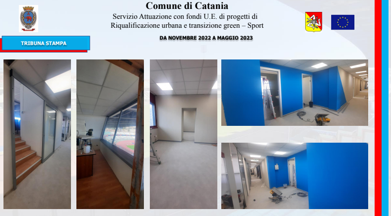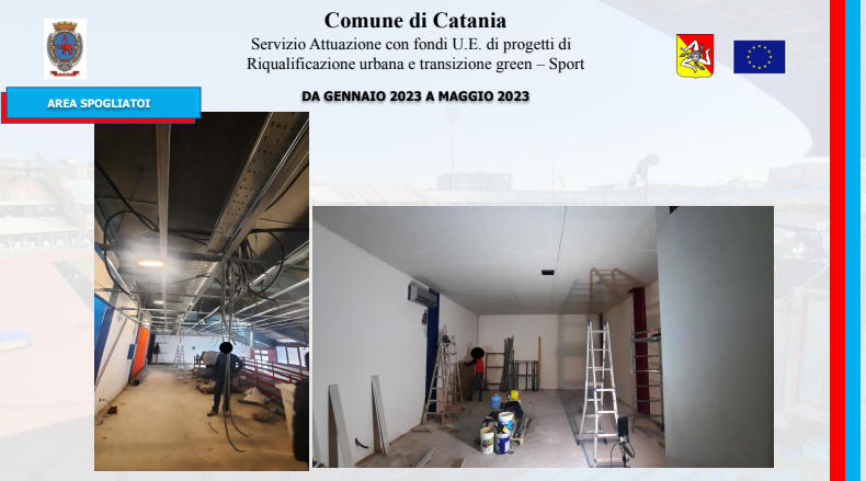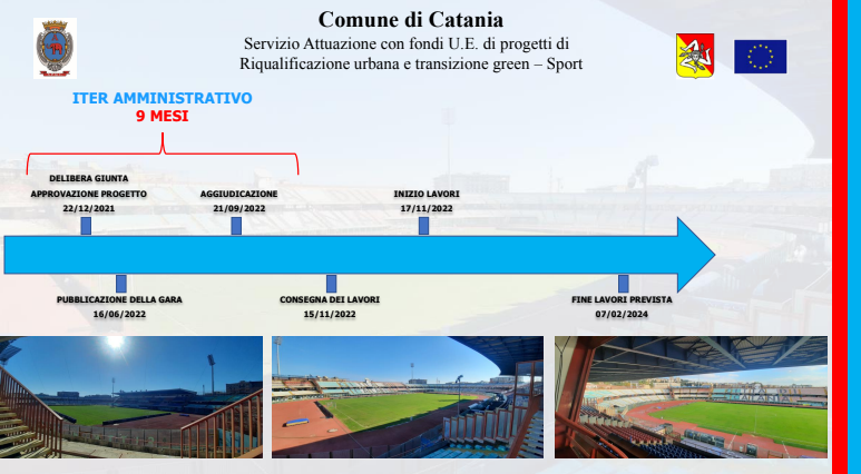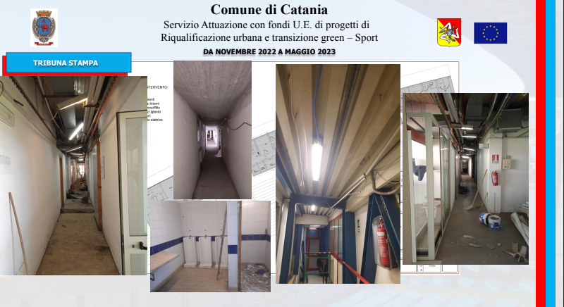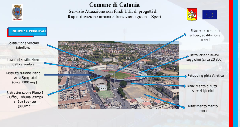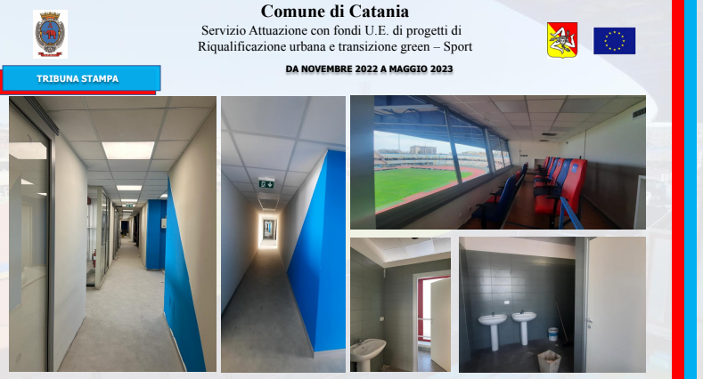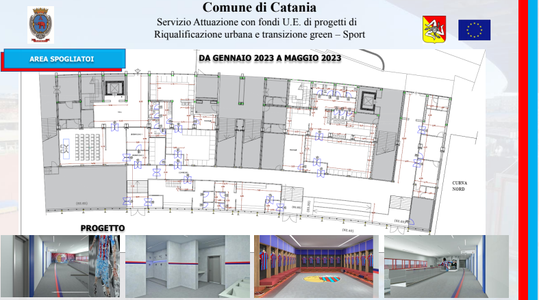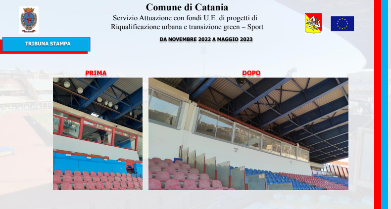 Un iter amministrativo avviato nel dicembre del 2021 con la delibera di approvazione del progetto da parte della giunta comunale, proseguito con la pubblicazione della gara il 16 giugno del 2022 e culminato, il 21 settembre, con l’aggiudicazione dei lavori alla SCS Costruzioni Edili. Lavori che, iniziati ufficialmente il 17 novembre, è previsto siano ultimati nel febbraio del 2024: l’importo complessivo è di quasi sei milioni di euro (5.257.812,25 euro per l’esattezza), attinto da fondi comunitari, frutto della rimodulazione della programmazione del Patto per Catania, ora denominato Piano per lo sviluppo e la coesione. Se l’impianto è di proprietà del Comune, il Catania è naturalmente spettatore assai interessato di questi interventi. Una particolarità del piano d’azione è stata infatti quella di prevedere lo sviluppo dei lavori senza impedire la regolare disputa delle gare interne del Catania: circostanza questa che ha inciso inevitabilmente sul piano d’intervento. “I lavori sono stati pianificati in modo tale da non disturbare la regolare esecuzione delle partite”, ha detto l’ingegnere Scuto ai giornalisti. In effetti, alcuni degli interventi più corposi sono stati progettati per l’estate.