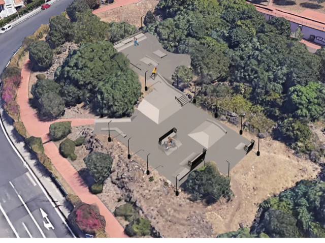 Il nuovo progetto prevede che il parco dedicato agli amanti della disciplina in questione sia inserito nel piazzale. Sarà riconvertita una porzione del giardino attualmente occupata da un piccolo campetto per ingrandire la superficie protetta con la recinzione. Verrà pure realizzato un impianto di illuminazione rendendo la zona fruibile anche nelle ore serali. Sarà presente un’area verde relax per poter osservare gli skaters in sicurezza. Gli esemplari arborei adulti garantiranno l’ombra adeguata. Il piano è stato ideato considerando il contesto paesaggistico connettendolo al disegno degli spazi verdi del Parco Gioeni.