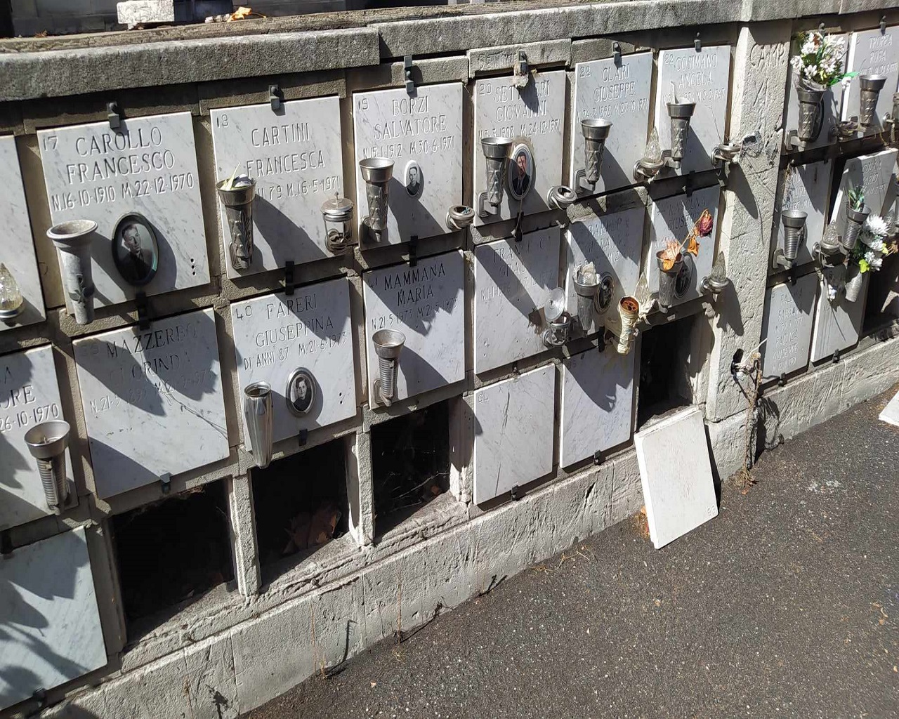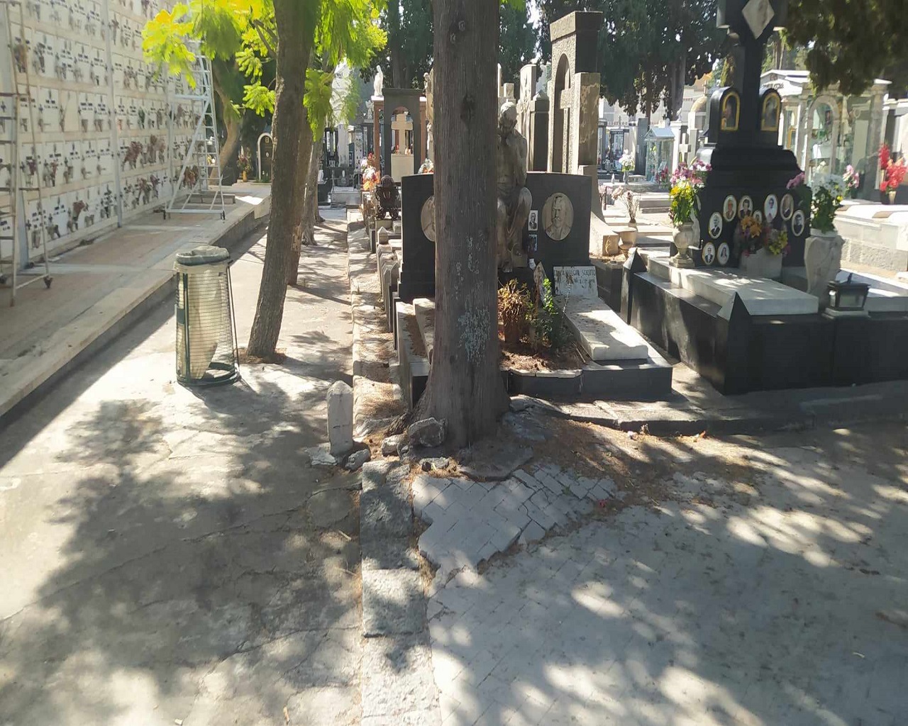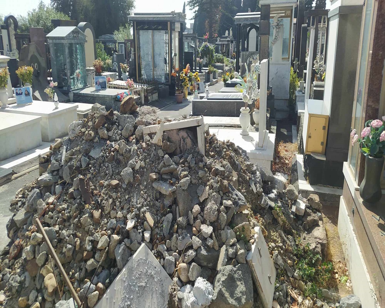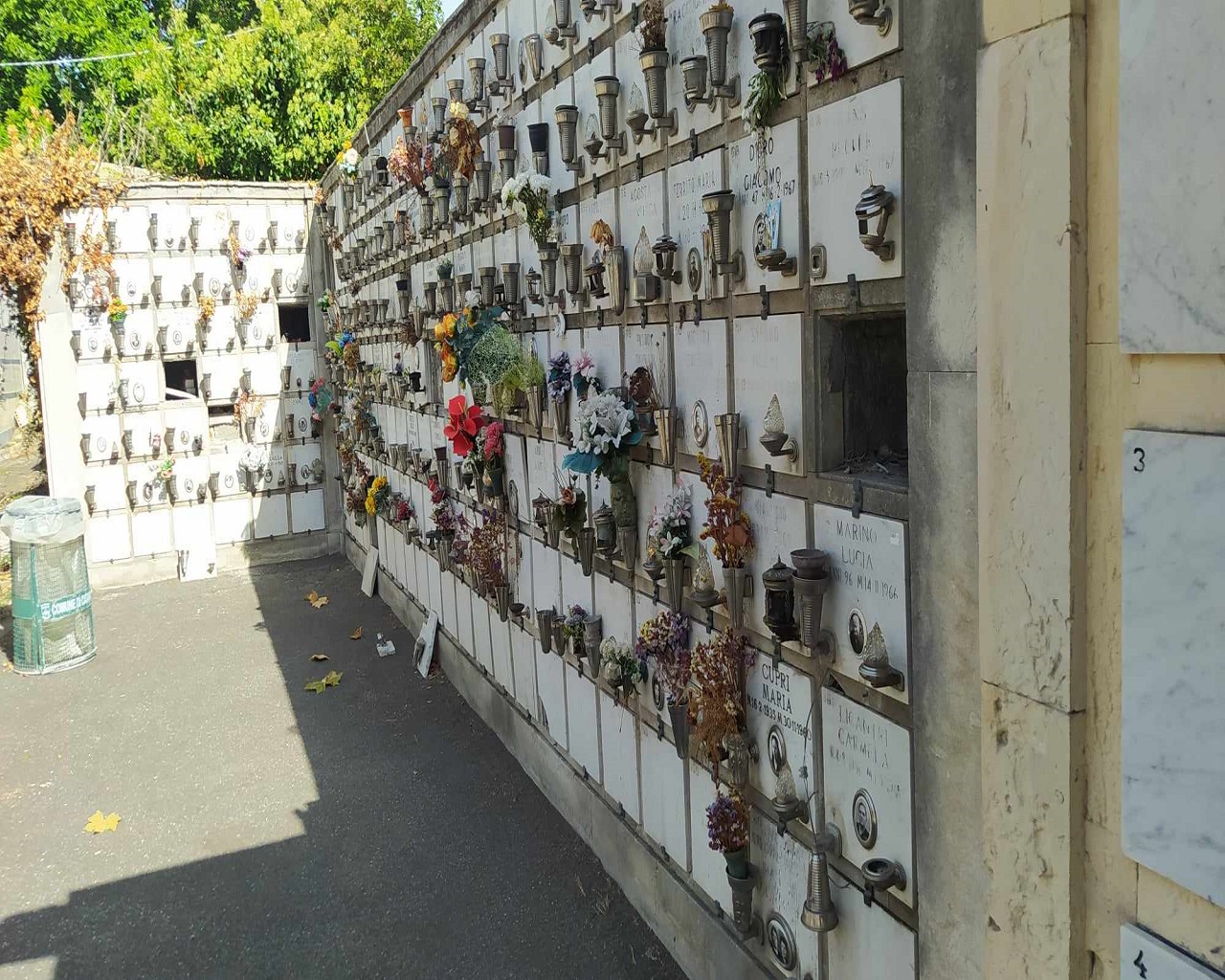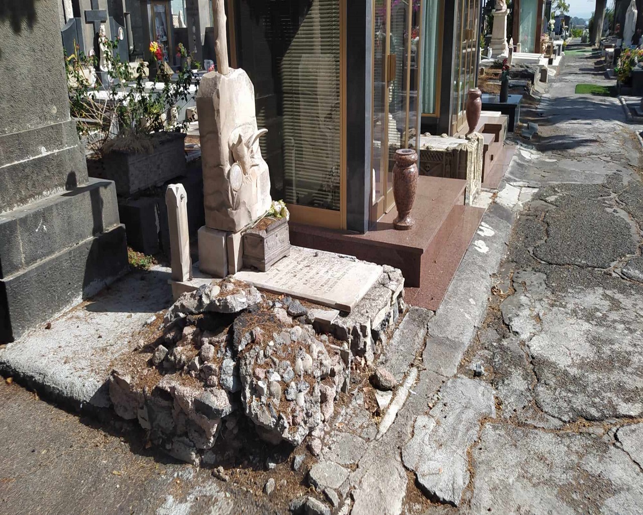 Spettacolo indecente anche per quanto riguarda le tombe. Alcune si presentano in stato di totale abbandono, mentre altre sono totalmente ricoperte da cumuli di macerie. Delle mattonelle pericolanti sono poi visibili all’altezza delle nicchie. Queste, in particolare lungo il viale che conduce all’ingresso principale, si presentano in condizioni pessime e alcune sono addirittura vuote.