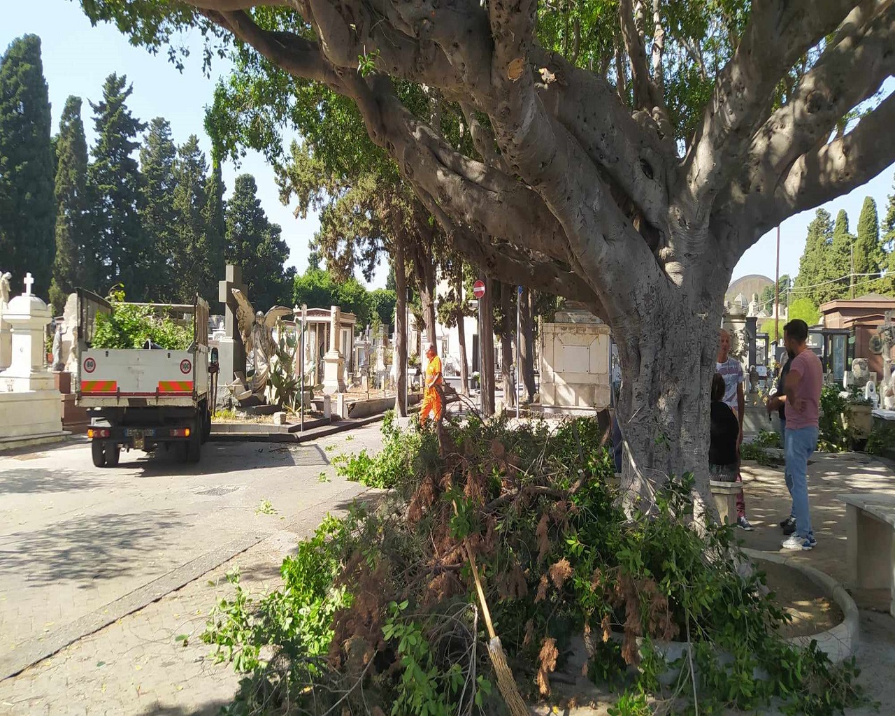 Dal sopralluogo compiuto da QdS.it al cimitero etneo, ci si accorge come all’ingresso di via Madonna del Divino Amore siano al lavoro degli operai impegnati a dare al luogo un volto quanto più decoroso possibile. Nei giorni scorsi, gli addetti della Catania Multiservizi hanno effettuato delle operazioni di potatura degli alberi.