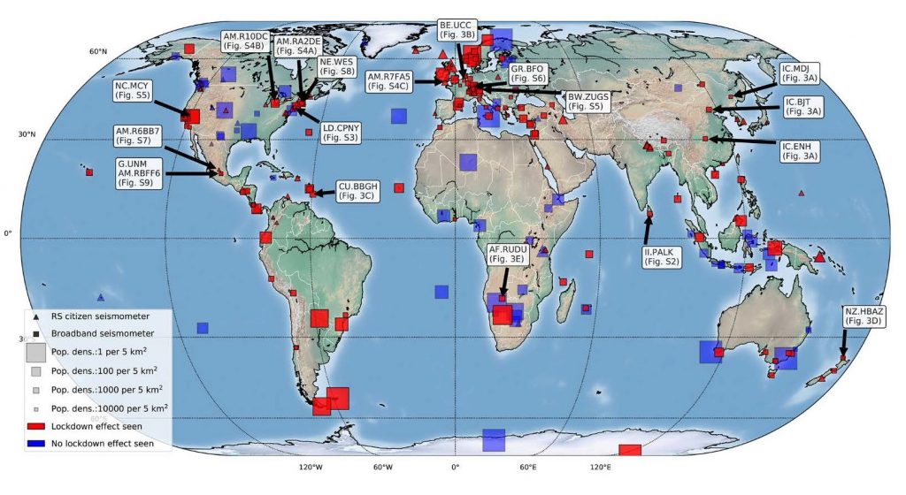 In base allo studio, verificato che nel 2020 non è stata registrata una riduzione dei terremoti, il calo del “ronzio” sismico antropogenico è stato senza precedenti e, in particolar modo, le più forti riduzioni del rumore sismico sono state riscontrate nelle aree urbane. Ma lo studio ha anche evidenziato significative riduzioni del rumore sismico in sensori collocati in pozzi a centinaia di metri di profondità e nelle aree più remote come nell’Africa subsahariana. Altro dato significativo dello studio è rappresentato dalla forte corrispondenza tra la riduzione del rumore sismico e i dati sulla mobilità umana ricavati dalle app di navigazione e resi pubblici da Google e Apple.