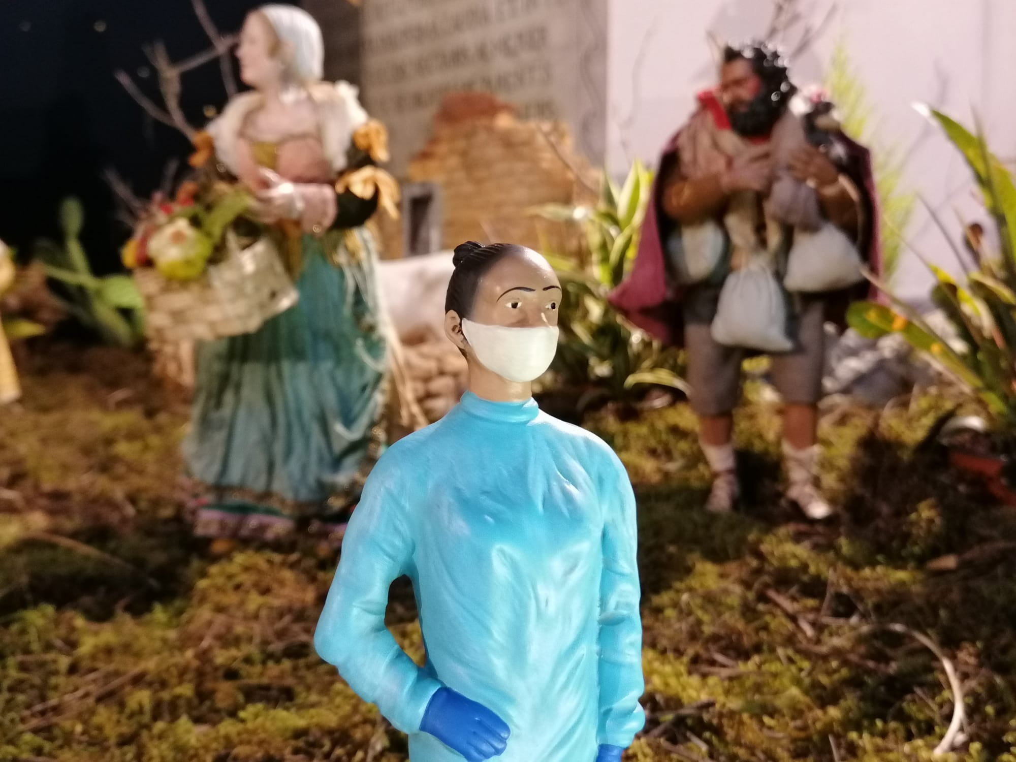 Il nuovo personaggio del Presepe 2020 è l’operatrice sanitaria, simbolo della lotta al Covid, un inno alla vita, quella delle persone guarite, salvate dall’abnegazione e dalla dedizione di tutti gli operatori sanitari.