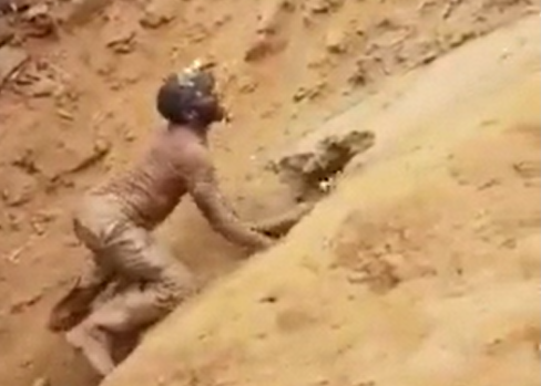 Un minatore del Congo scava a mani nude per salvare i compagni intrappolati. A causa delle forti piogge, una miniera d’oro è crollata: nove minatori sono rimasti intrappolati. Ma grazie ad uno dei compagni sono riusciti a salvarsi. Il video è diventato virale sui social.