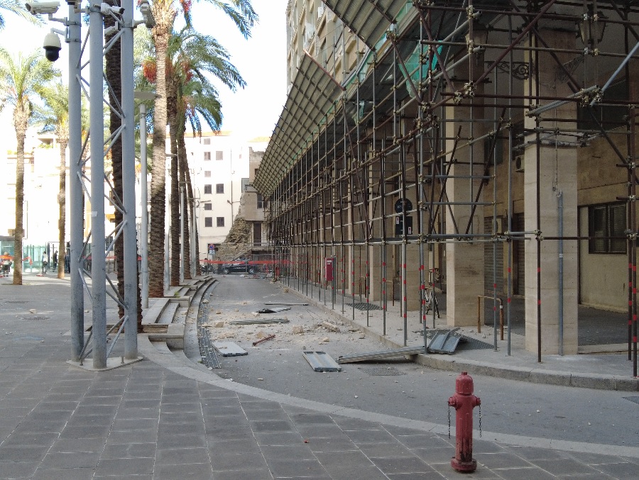 Secondo una prima ricostruzione, i calcinacci sarebbero caduti da una facciata dell’edificio vicino al Palazzo di Giustizia che ospitava gli uffici dell’EAS (Ente Acquedotti Siciliani). Sul posto, in seguito alla segnalazione di quanto accaduto al 112, sono intervenuti i vigili del fuoco, che hanno proceduto alla messa in sicurezza della zona.