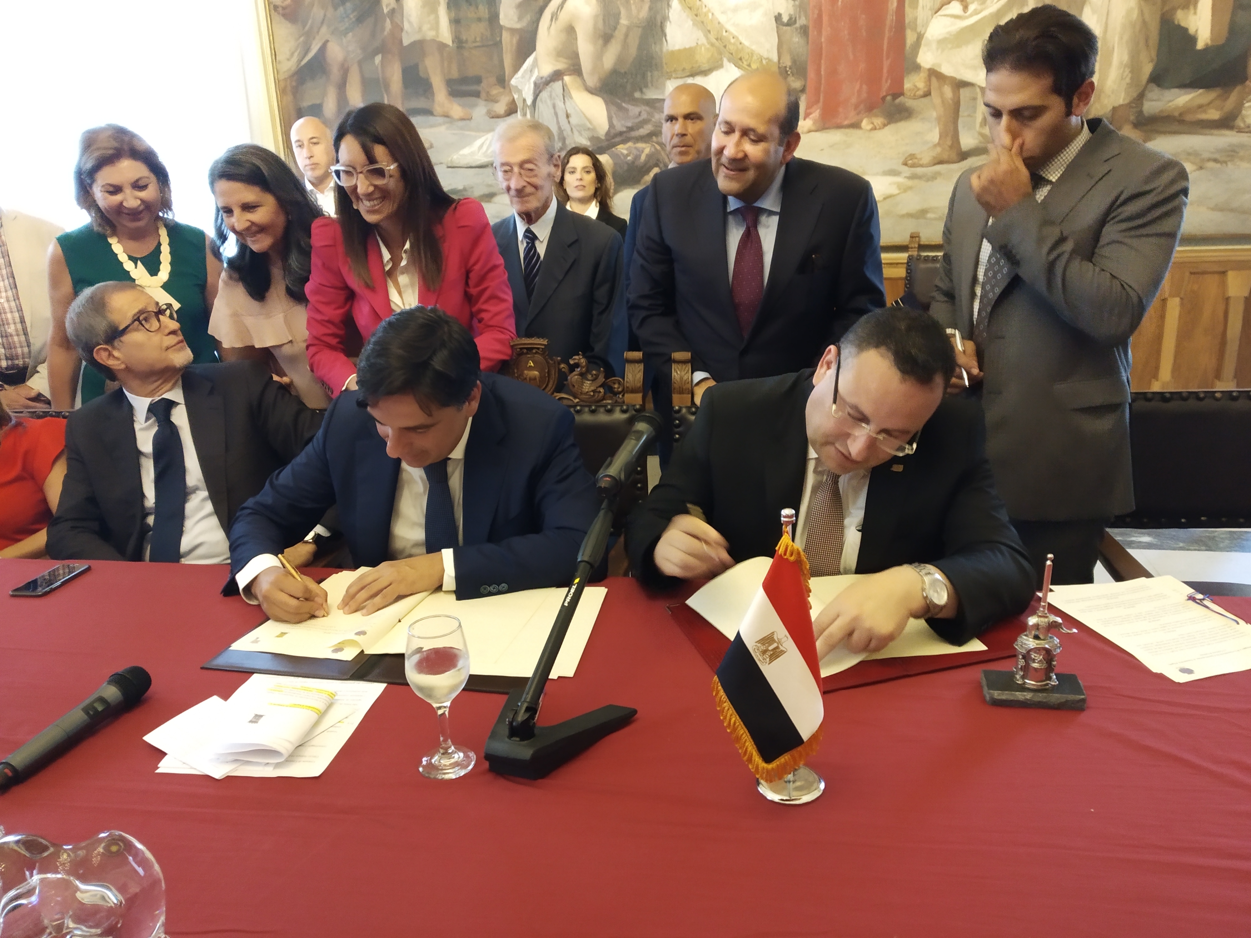 CATANIA – Rafforzare i legami di amicizia, cooperazione e comprensione reciproca tra Catania e Alessandria d’Egitto in tema di cultura, patrimonio, turismo, agroindustria, pesca, nanotecnologia, innovazione delle piccole e medie imprese e sviluppo delle infrastrutture portuali. È questo l’obiettivo dell’accordo tra la Città dell’Etna e la seconda città più grande del paese delle Piramidi, firmato ieri mattina nel salone Bellini di Palazzo degli Elefanti dal sindaco Salvo Pogliese e dal governatore della regione di Alessandria Abdel Aziz Konsova, alla presenza del presidente della Regione Nello Musumeci e dell’ambasciatore della repubblica araba d’Egitto in Italia, Hisham Badr.