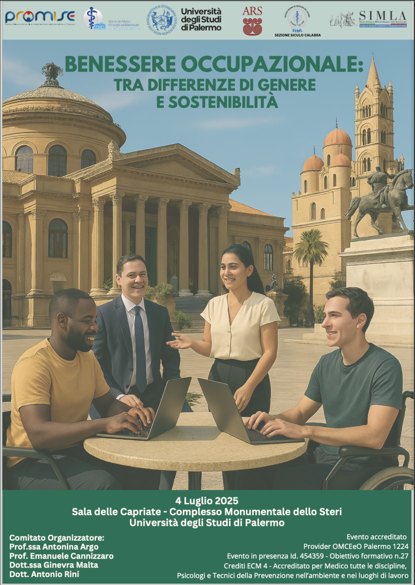 Di differenze di genere nella valutazione del rischio e di sostenibilità nei luoghi di lavoro si discuterà il prossimo 4 luglio a partire dalle 9:00 a Palermo, presso il complesso monumentale dello Steri (piazza Marina 61), con il convegno “Benessere occupazionale tra differenze di genere e sostenibilità” promosso dall’Università degli Studi del capoluogo regionale e con il patrocinio della Società Italiana di Medicina Legale (SIMLA) che sarà presente con il presidente prof. Francesco Introna, impegnato nei saluti istituzionali assieme, tra gli altri, al Magnifico Rettore, professore Massimo Midiri e al sindaco, professore Roberto Lagalla. Il comitato organizzatore, composto dalla professoressa Antonina Argo, dal professore Emanuele Cannizzaro, dalla dottoressa Ginevra Malta e dal dott. Antonio Rini, ha messo in campo il contributo di esperti di medicina del lavoro, medicina legale, psicologia, giurisprudenza e gestione delle risorse umane per offrire uno spazio di confronto multidisciplinare su modelli, strumenti e strategie operative per affrontare in modo integrato i temi del benessere occupazionale, delle pari opportunità e della sostenibilità. Interverranno nelle sessioni di moderazione anche la dottoressa Sara Sablone, componente del direttivo Simla e la professoressa Stefania Zerbo, Direttrice della scuola di specializzazione di medicina legale dell’Università degli studi di Palermo.