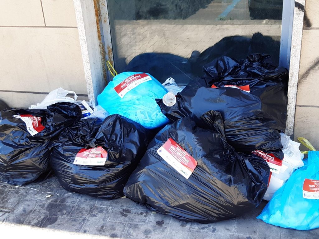 CATANIA – Rifiuti in tutta la città. Cumuli grandi o molto grandi si sono formati in ogni via del centro o quasi, dalla zona di piazza Cavour al corso Italia, dal viale Vittorio veneto a via Renato Imbriani. Nella parte della città dove è in vigore la raccolta dei rifiuti “porta a porta”, nei giorni scorsi, sono comparse vere e proprie montagne di immondizia per la mancata raccolta da parte dell’amministrazione comunale. Che ha stabilito di non tollerare più i furbetti della spazzatura, che non rispettano calendari e materiali da conferire, bollando il sacchetto non idoneo come “rifiuto non conforme” e lasciandolo lì, sulla strada, senza raccoglierlo.