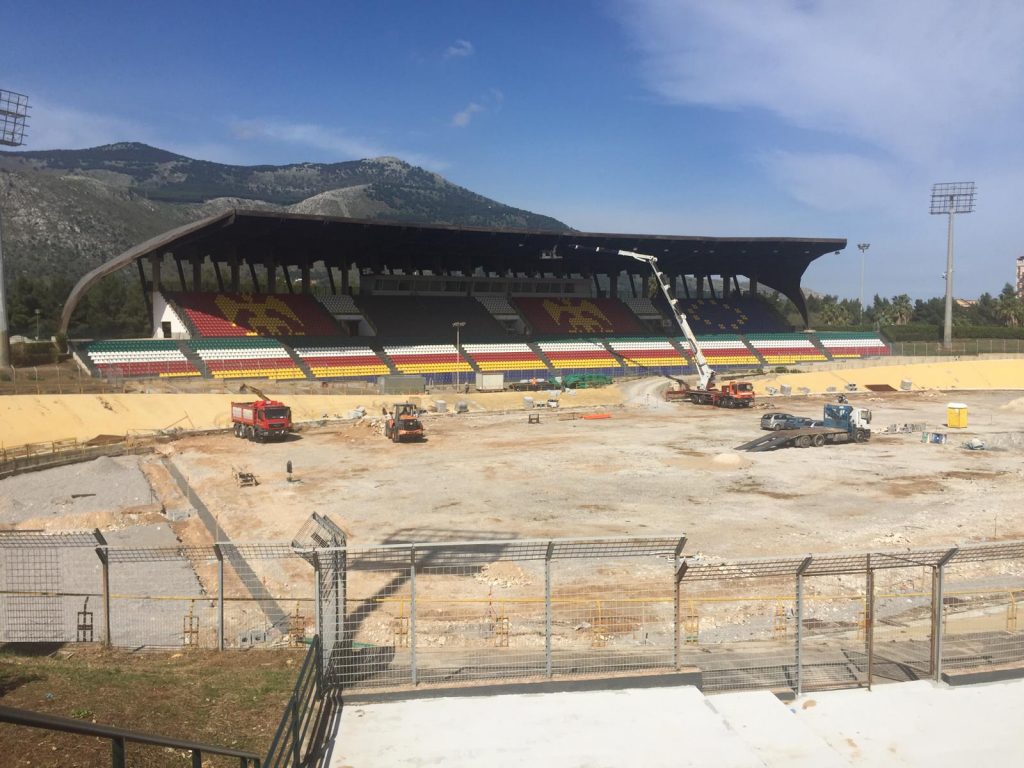 I lavori alla struttura di via Lanza di Scalea allo Zen riguardano il rifacimento degli impianti elettrici e idrici di uffici, tribuna coperta, tribuna scoperta, campo e torri faro, la sostituzione di 11.155 seggiolini, la realizzazione di 10.600 metri quadrati di prato sintetico omologabile, il rifacimento di 3.120 metri quadrati di pista ciclistica, la sostituzione dei cancelli perimetrali per oltre 500 metri quadrati, il consolidamento strutturale e l’impermeabilizzazione delle tribune e delle gradinate, la sostituzione di un’ottantina di porte, di oltre 150 pezzi di sanitari e di circa 200 rubinetti, la tinteggiatura di oltre 5mila metri quadrati di muri e pareti, la cura di circa 2mila metri quadrati di verde e lo smaltimento di oltre 600 metri cubi di plastica, legno e ferro.