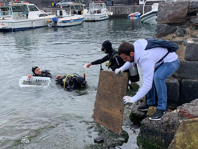 Una giornata all’insegna della tutela del territorio e dell’ambiente che ha visto gli studenti del Gruppo Sommozzatori dell’istituto “Duca degli Abruzzi di Catania” (in collaborazione con l’ASD Jonica Diving School, la Capitaneria di Porto di Catania e il Comune di Catania) ripulire il litorale e i fondali del porticciolo turistico di Ognina.