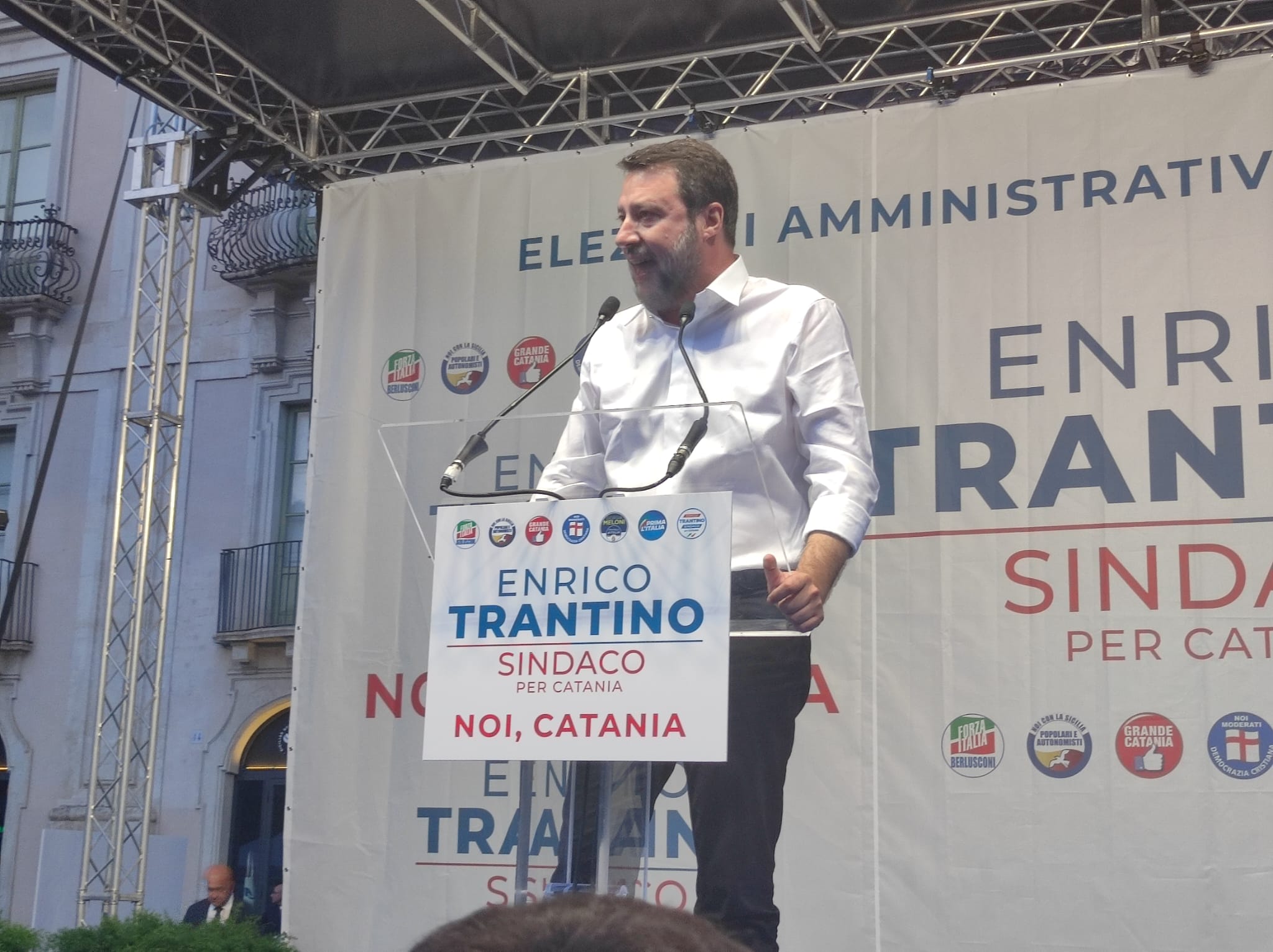 Il segretario della Lega ha poi promesso di portare avanti un dialogo con Enrico Trantino in caso di vittoria elettorale (bisogna “stravincere” senza passare dal ballottaggio ha aggiunto Salvini) al fin di intraprendere la realizzazione di opere importanti in città come il Waterfront e l’interramento della linea ferroviaria.