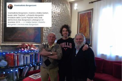 Insieme, scrive nel post sulla sua pagina Fb Borgonzoni, “Roberto Morgantini, fondatore delle Cucine Popolari”, per uno scambio di auguri, “nella sede dell’Archivio Aldo Borgonzoni a Bologna il 31 dicembre 2019”.