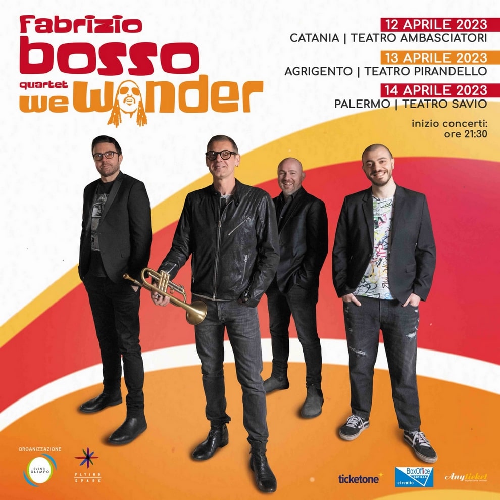 Fabrizio Bosso Quartet in Sicilia con tre imperdibili date organizzate da Eventi Olimpo. Il 12 aprile al Teatro Ambasciatori di Catania, biglietti in vendita su TicketOne (https://bit.ly/3RmfCgA).Il 13 aprile al Teatro Pirandello di Agrigento, biglietti in vendita su Anyticket (https://bit.ly/3kWTFZk).Il 14 aprile al Teatro Savio di Palermo, biglietti in vendita su TicketOne (https://bit.ly/3HMDMxC).L’acquisto è inoltre possibile presso il botteghino dei teatri. Inizio spettacoli ore 21.30.