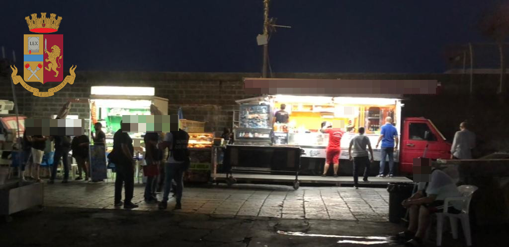 Il controllo degli alimenti, effettuato dagli operatori dell’Asp, permetteva poi di accertare la mancanza di acqua potabile e la presenza di oltre 4 kg di tonno privi di tracciabilità, sottoposti a sequestro. Irrogate poi diverse sanzioni per la violazione della normativa in materia di sicurezza sui luoghi di lavoro. Per l’attività gli agenti hanno disposto sanzioni per circa 40mila euro e la sospensione dell’esercizio. Furgoni, tavoli, sedie e ciò che occupava abusivamente il suolo pubblico, infine, sono stati sequestrati e rimossi.