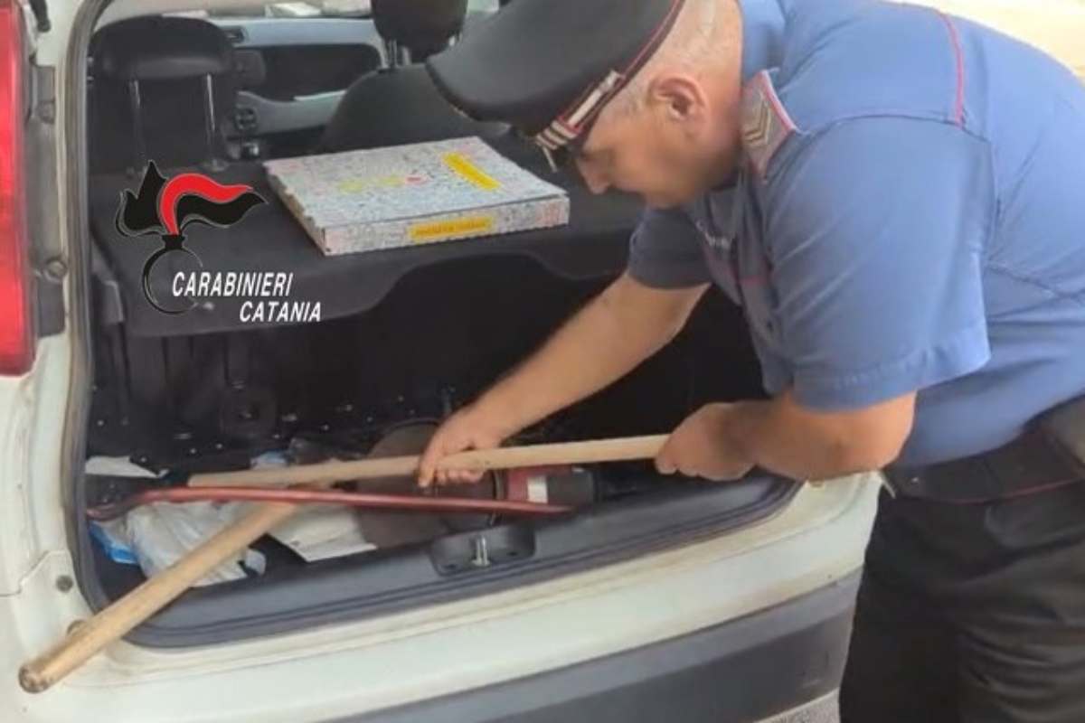 Dopo pochi giorni, a fine novembre, una pattuglia impegnate nei servizi di controllo del territorio, nell’intercettare un’autovettura sospetta, ferma in una zona residenziale di Pedara, con a bordo una persona, aveva modo di rinvenire al suo interno, strumenti di effrazione di vario genere, due targhe, un telefono, delle mascherine chirurgiche ed un cartone per la pizza, oltre che un set di posate, risultato, poi, di provenienza furtiva in quanto, in uno ad altri oggetti preziosi, poco prima sottratto da una villetta ubicata nelle immediate vicinanze , la cui porta finestra era stata tagliata, verosimilmente, proprio con un flex.