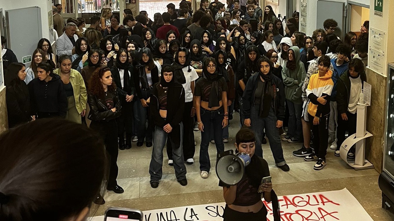 Flashmob questa mattina al liceo Classico Umberto I di Palermo. Le studentesse dell’istituto hanno organizzato una protesta dentro la scuola in solidarietà alle donne iraniane. Si sono riunite nell’atrio, coperte da un foulard nero, che hanno poi tolto per mostrare supporto alla battaglia delle donne dell’Iran contro l’obbligo governativo di portare il velo.