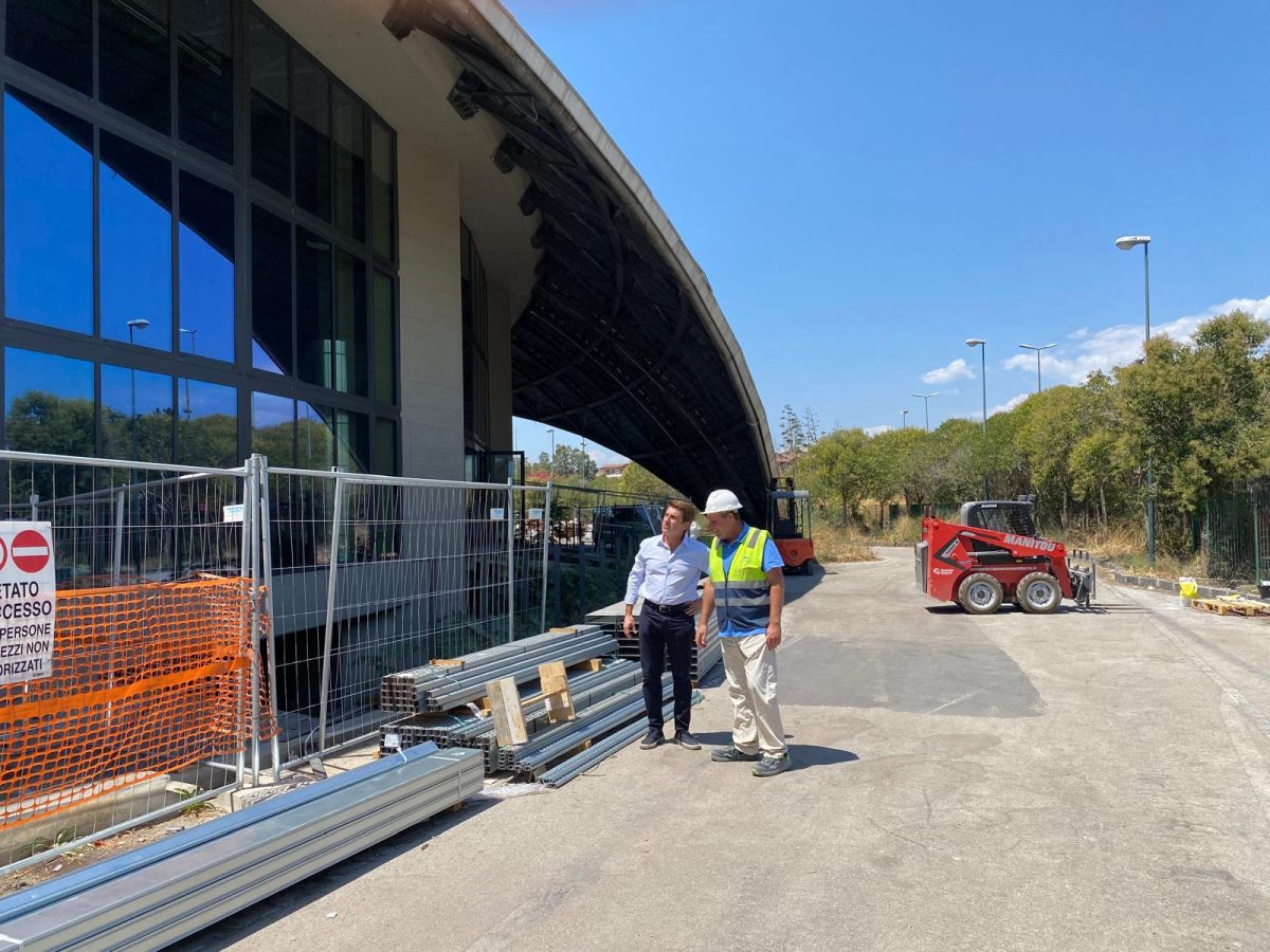 Oggi il cantiere mostra avanzati segni concreti di rinascita: dopo la radicale bonifica iniziale con la rimozione di oltre 140 tonnellate di materiali, sono stati completati la realizzazione delle strutture di carpenteria metallica, l’installazione degli infissi, il montaggio dei condotti di aerazione, la nuova copertura del tetto e l’implementazione degli impianti di climatizzazione. Sono inoltre in corso interventi di sistemazione e impermeabilizzazione, posa di grate e parapetti in ferro, rifacimento delle pavimentazioni, sostituzione di infissi interni ed esterni, ripristino dei servizi igienici e degli spogliatoi, oltre all’installazione dei nuovi impianti elettrici, di illuminazione, antincendio e idrico-sanitari.