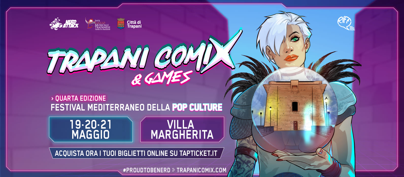 Torna il Trapani Comix & Games. Dal 19 al 21 maggio, dalle ore 10.00 alle ore 23.00, alla Villa Margherita a Trapani, in Sicilia, il festival del fumetto dedicato al mondo dei comics che farà sognare grandi e piccini. Il Trapani Comix accoglie gli appassionati dei fumetti, dei giochi e del mondo cosplay. Un palco di 300 mq, 10 ore al giorno di intrattenimento, 6 aree tematiche, 4 sale conferenza, 50 ospiti tra cosplayer, creator, comic artist, performer, host, tatooist, dubber.