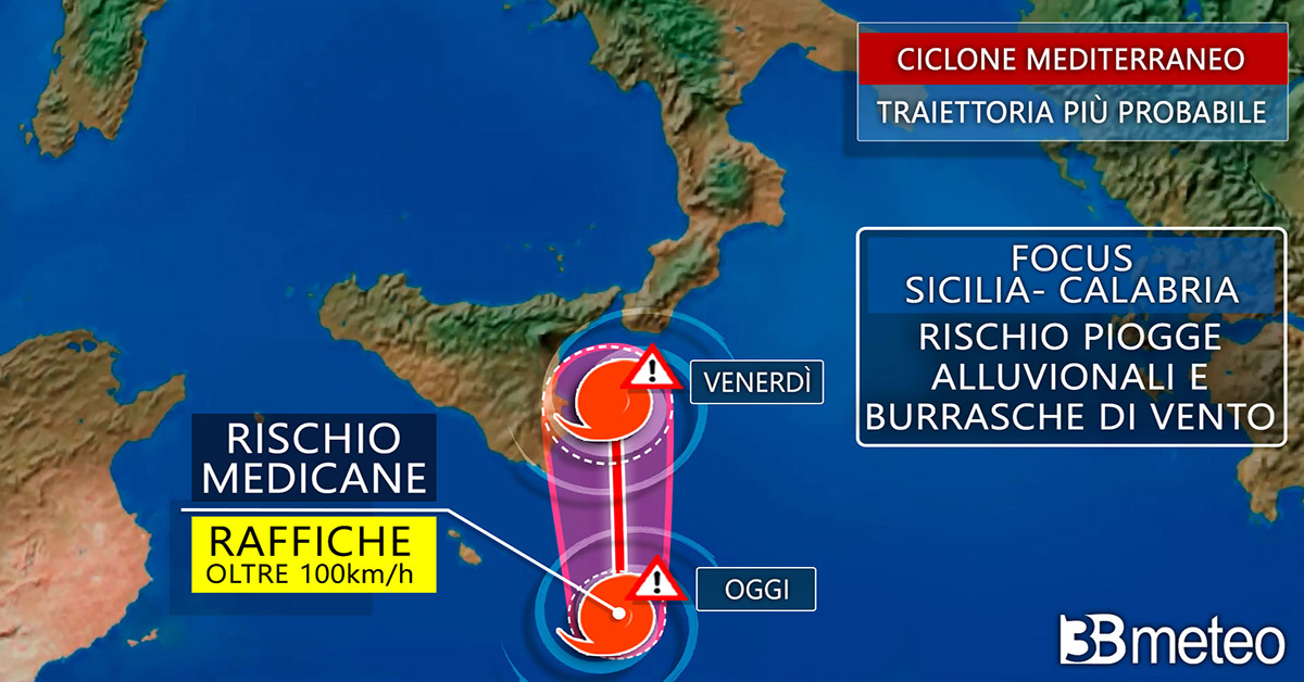 Galleria foto 'Medicane in Sicilia, dove si trova in questo momento e a che ora arriverà' - foto 1