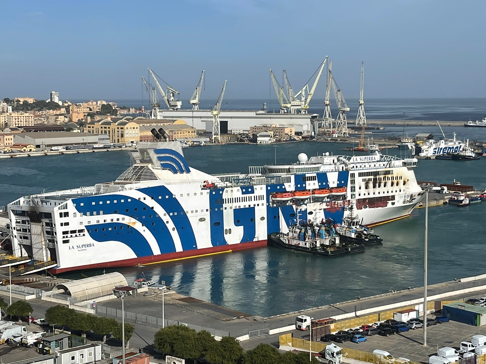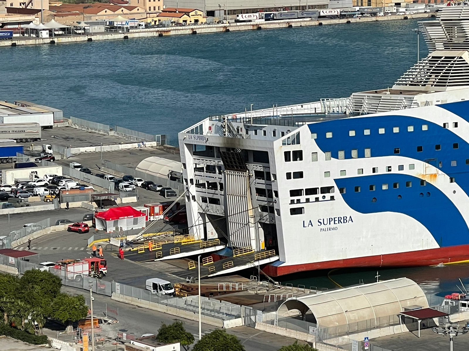 Galleria foto 'Palermo, incendio ancora attivo sul traghetto che rischia di inclinarsi: la situazione oggi' - foto 6