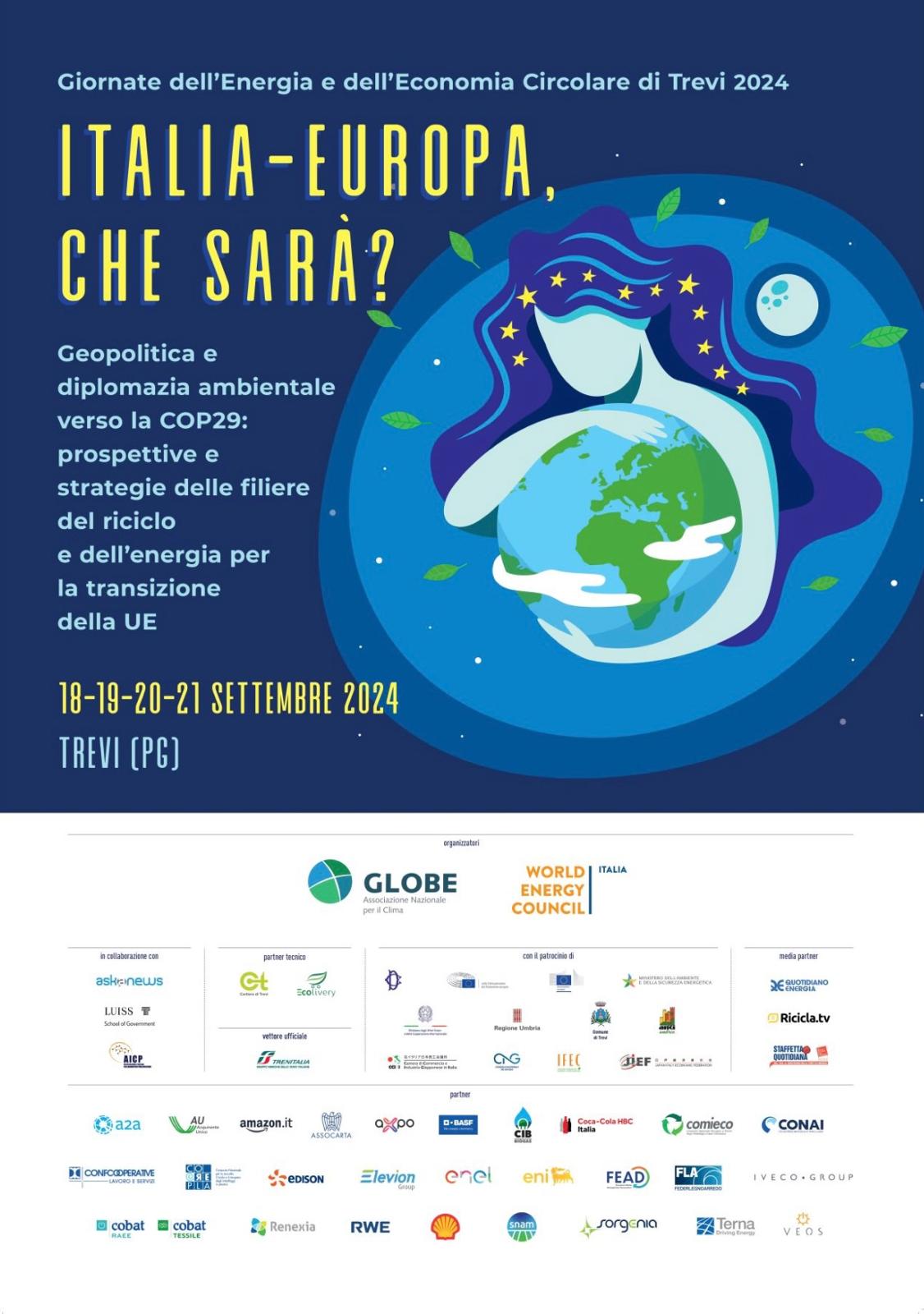 Si sono svolte dal 18 al 21 Settembre 2024 “Le Giornate dell’Energia e dell’Economia Circolare”, un evento organizzato da Globe Italia e Wec Italia in collaborazione con Luiss School of Government, Associazione Italiana Collaboratori Parlamentari e Askanews, presso il borgo di Trevi (PG). L’evento, alla sua ottava edizione, ha visto susseguirsi talk, workshop, dibattiti e momenti di networking, durante il quale esponenti politici, istituzioni, professori e studenti universitari, imprese energetiche e della filiera del riciclo, collaboratori parlamentari, giovani e giornalisti hanno potuto confrontarsi sul ruolo dell’Italia nel nuovo contesto europeo e mediterraneo di fronte alle sfide del nostro tempo: la decarbonizzazione, il riciclo e il riuso dei materiali, la mobilità a basse emissioni, la buona economia.