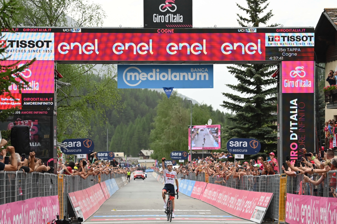 Dietro questa vittoria c’è riscatto, c’è passione, c’è voglia di rilanciarsi. Giulio Ciccone (Trek-Segafredo) ha vinto la quindicesima tappa del 105^ Giro d’Italia, la Rivarolo Canavese-Cogne di 178 km. Un successo che vale sul piano personale, ma che rende felice il ciclismo italiano che ritrova uno dei talenti più fulgidi. Al secondo e terzo posto si sono classificati rispettivamente Santiago Buitrago Sanchez (Bahrain Victorious) e Antonio Pedrero (Movistar Team).
