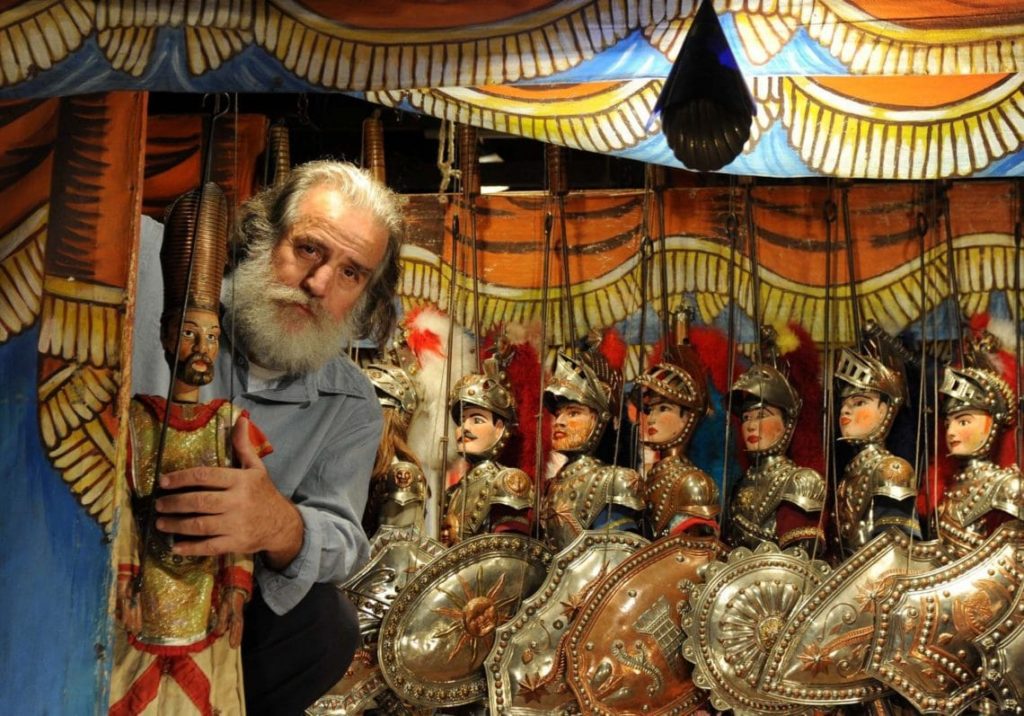 Per Cuticchio, andare in scena nell’Ice Music Festival è anche l’opportunità per esportare un pezzo fondamentale della cultura siciliana. Lui, a 72 anni, è probabilmente il più importante erede della tradizione dei cuntisti siciliani (per lui anche un cameo ne Il Padrino – Parte III di Francis Ford Coppola e il Terraferma di Emanuele Crialese). A Palermo, quasi mezzo secolo fa, ha fondato il Teatro dei Pupi Santa Rosalia e da oltre 40 anni, tramite l’associazione “Figli d’Arte Cuticchio”, opera per salvaguardare l’arte dei pupi.