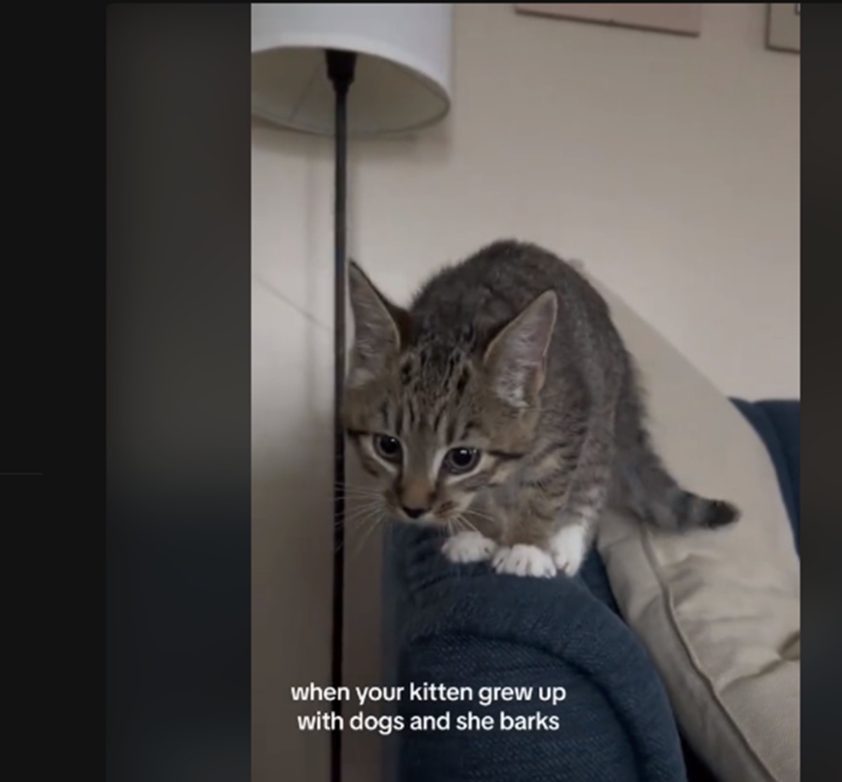 Sembra un “ibrido” ma non è. Virale sui social un video, condiviso qualche mese fa dal canale TikTok @ellalandy2, di una gattina che invece di miagolare abbaia. Un curioso caso che ha fatto letteralmente impazzire il web a causa del curioso verso. Il contenuto ha raggiunto oltre 14 milioni di “Mi piace” e un’infinità di commenti. Le visualizzazioni lievitano di minuto in minuto. Il dolce animale, come spiegato nella scritta presente sul filmato, “è cresciuta insieme ai cani e adesso abbaia”. Una di quelle visioni che strappano il sorriso agli utenti dei vari social.