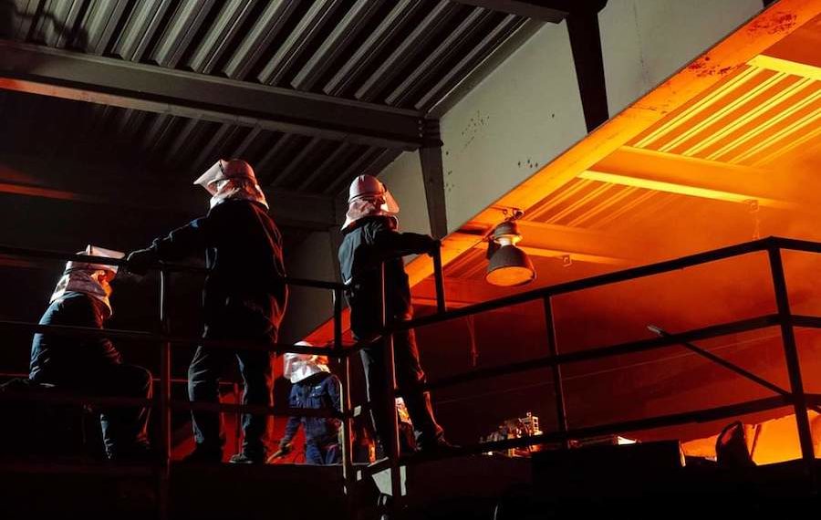 Dove la scena sembra tranquilla, mentre al contrario tutto è costantemente in movimento, i raggi di luce illuminano gli elementi essenziali delle strutture, creando un gioco geometrico che delinea lo spazio e ne definisce i limiti. I lavoratori si trasformano in supereroi o alieni, ma allo stesso tempo il senso del movimento li avvicina all’essere elementi di un meccanismo complesso e a un universo che l’immagine rende armonico. L’uso del bianco e nero, che investe gli spettatori, evoca la sensazione di una pausa del tempo, di un fermo immagine, che ci porta alla trascendenza. Al contrario, nelle foto a colori, il contesto industriale e le componenti visive dello scenario industriale danno un ritmo diverso, quasi dinamico, alla scena, mettendo in risalto l’armonia degli elementi. Ancora una volta è la luce a giocare un ruolo essenziale.