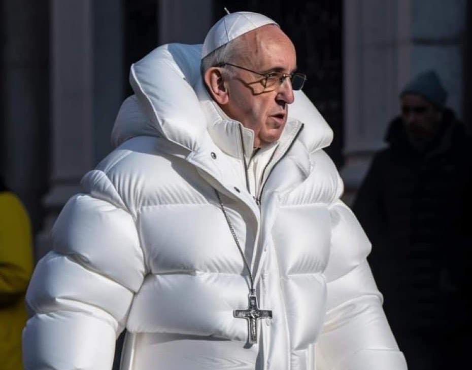 Se la montatura con protagonista il “paperone” americano aveva raccolto 5 milioni di visite in appena 48 ore, adesso è il turno di Papa Francesco e del suo “finto” giubbotto scintillante e oversize.