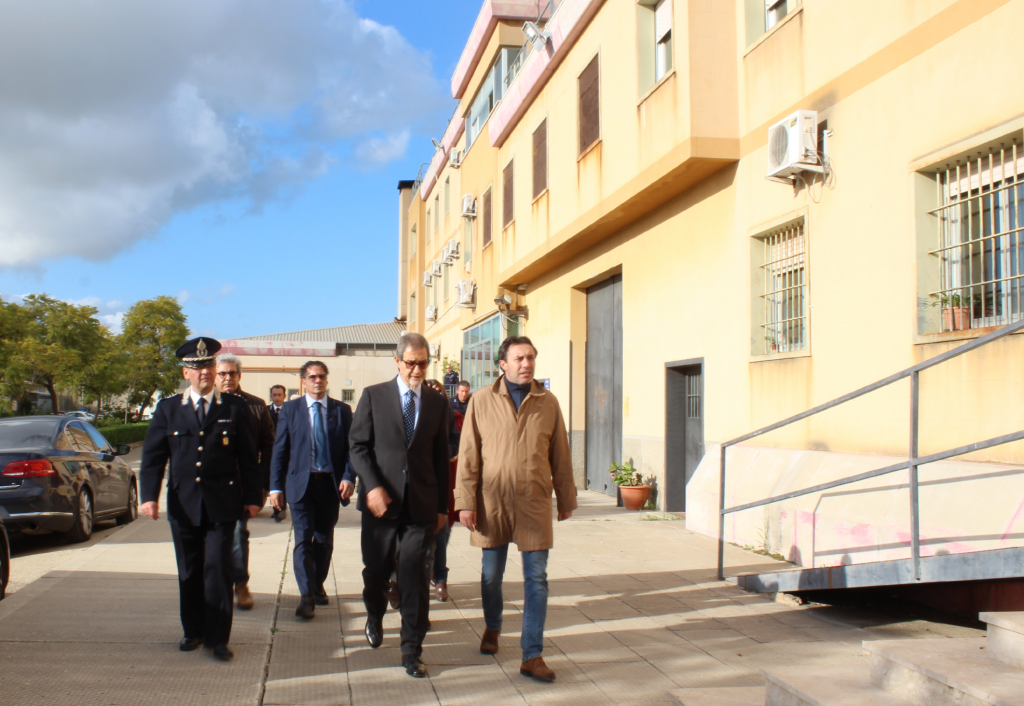 Tappa importante per il Presidente Musumeci è stata quella presso la casa circondariale; infatti dopo aver inoltrato una nota al Ministro della Giustizia, Alfonso Bonafede e aver denunciato lo stato di profondo degrado in cui versa il carcere “Pasquale di Lorenzo”, Musumeci, accompagnato dal direttore della struttura Valerio Pappalardo e il comandante della Polizia Penitenziaria Giuseppe Lo Faro, ha voluto visitare il carcere e constatare di persona le gravi carenze che riguardano non solo la struttura in sè ma anche tutto il personale.