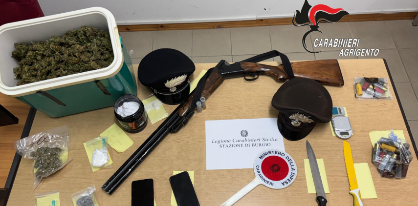 A Burgio, i carabinieri della Sezione Radiomobile della Compagnia di Sciacca, con il supporto della locale Stazione carabinieri, hanno arrestato in flagranza di reato un 35enne del luogo, già noto alle Forze dell’Ordine, per detenzione di arma clandestina e detenzione ai fini di spaccio di sostanze stupefacenti, nonché denunciato in stato di libertà per maltrattamenti in famiglia.