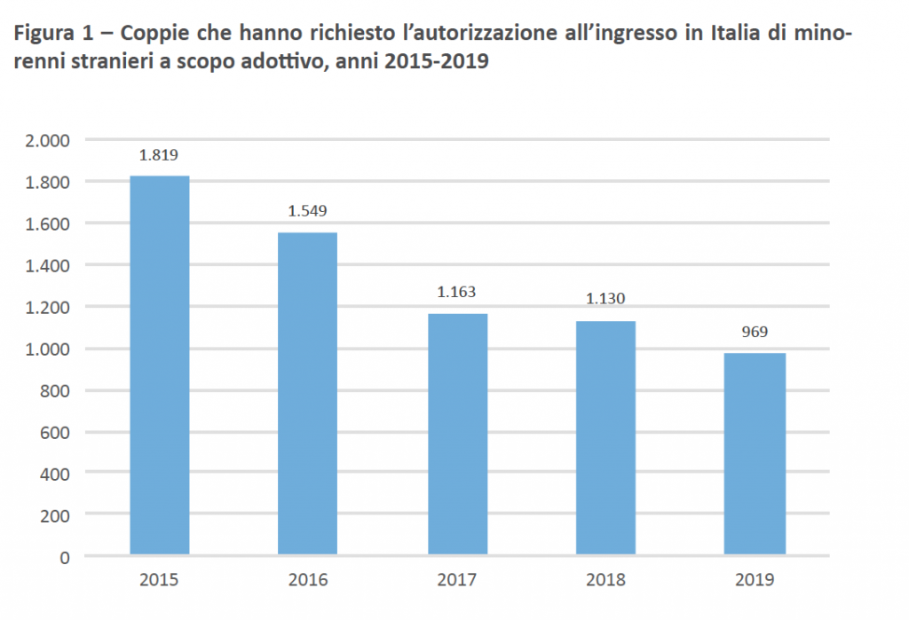 Paragonando il 2019 con gli anni precedenti ecco i dati del numero di minori adottati: 2015 con 1.819 minori; 2016 con 1.549 minori; 2017 con 1.163 minori; 2018 con 1.130 minori e per l’appunto il 2019 con 1.205 minori: nel raggio temporale degli ultimi cinque anni quindi si è registrato un calo in termini di adozioni internazionali del 46,7%.