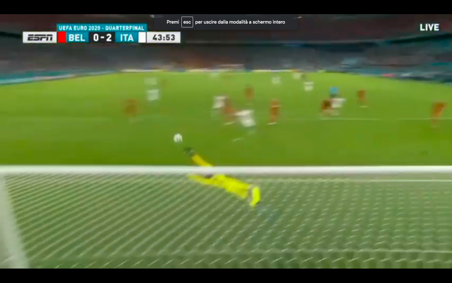 Raddoppia Insigne con un meraviglioso tiro a giro, poi Lukaku accorcia su rigore. Italia avanti 2-1 alla fine del primo tempo sul Belgio.