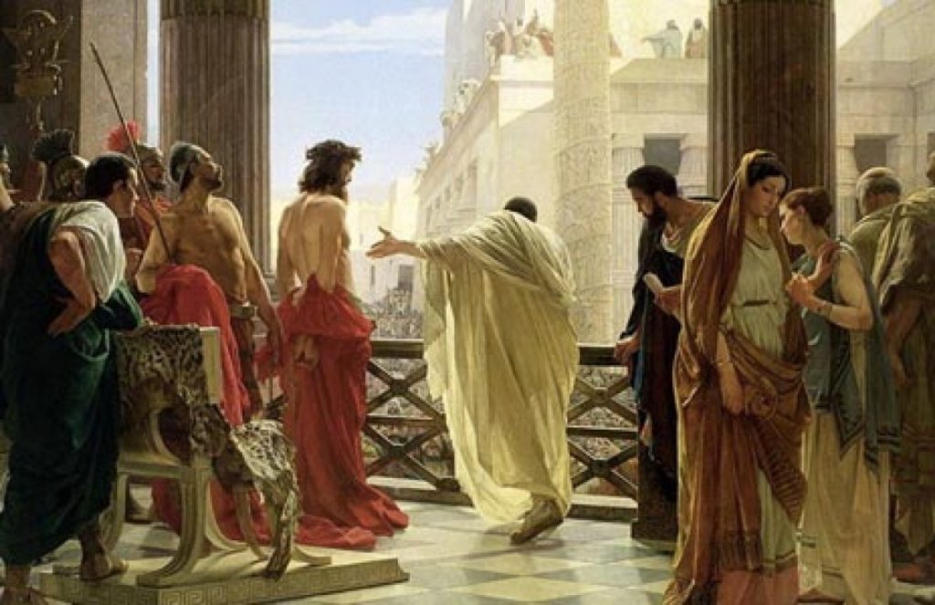 Certi dell’ingiustizia della condanna e dell’irragionevolezza delle sue motivazioni, ci si continua a chiedere se oggi può avere ancora un senso interrogarsi sulla irresolutezza mostrata in occasione del processo da Pilato, la cui storia personale, per quel che risulta, è costellata di episodi di arroganza, altezzosità e di vero e proprio disprezzo per gli ebrei, di cui non comprendeva la logica e tantomeno la religione. Un credo, dal suo punto di vista, assurdamente monoteistico, per lui che era stato educato al culto del panteon degli dei romani, con le loro qualità e i tanti vizi, così assolutamente umani e quindi tanto comprensibili e a volte anche protettivi e persino patriottici.