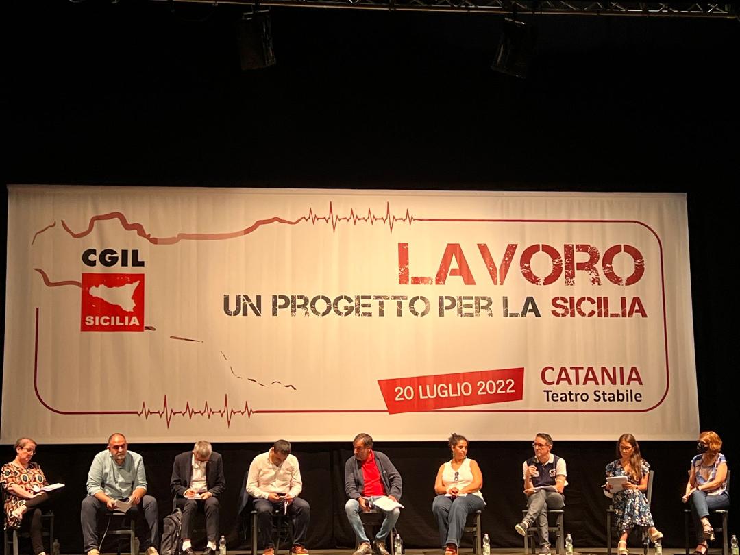 Oggi, giorno della fiducia al Governo, al Teatro Stabile di Catania si è svolto il dibattito “Un progetto per la Sicilia” di Cgil. Con la partecipazione di Alfio Mannino, segretario regionale, e di Maurizio Landini, segretario nazionale.