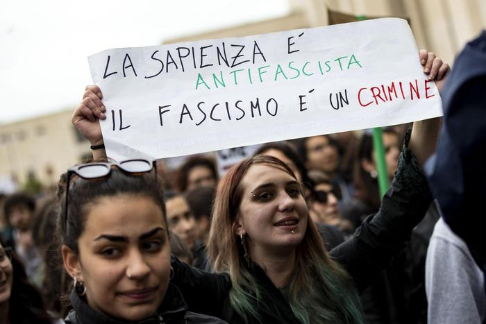 “Sono assassini. Qui non ci metteranno mai piede qui. La Sapienza è antifascista. Il fascismo è un crimine” hanno scandito gli studenti, mentre in piazza sventolano anche bandiere dell’Anpi.