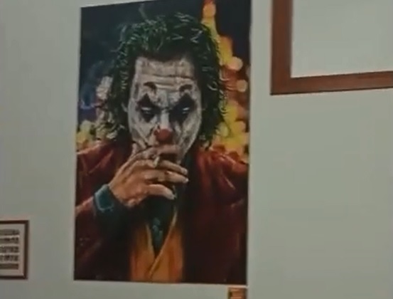 Alle spalle del divano di colore marrone, appesi sul muro, campeggiano un poster del Joker interpretato da Joaquin Phoenix nell’omonima pellicola e uno di Al Pacino nel film “Il Padrino”. Nelle altre stanze si notano anche dei peluche e diverse paia di scarpe collocate all’interno di una scarpiera.