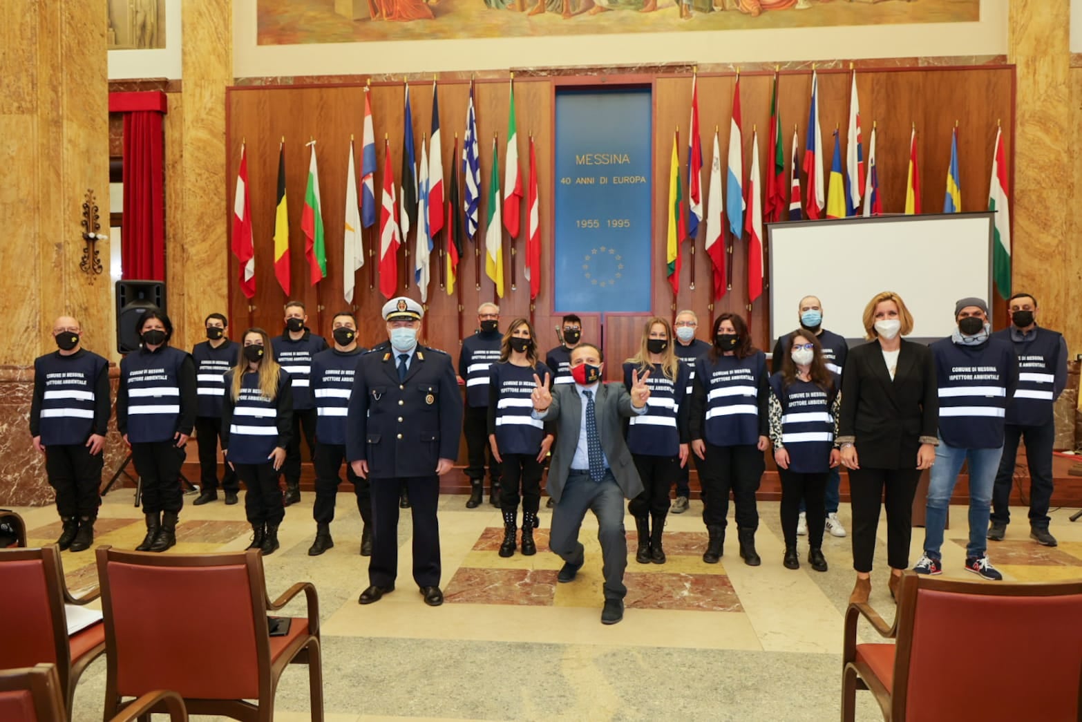 Dopo la lettura della formula di giuramento da parte di ciascuno degli Ispettori ambientali, il sindaco De Luca ha augurato loro buon lavoro: “Siate orgogliosi – ha detto – dell’attività che andrete a svolgere e rendeteci orgogliosi di quanto svolgerete. Noi confidiamo in voi. Rappresentate uno dei tasselli che rientrano nella strategia attuata da questa Amministrazione per la gestione del ciclo dei rifiuti che ha determinato importanti e coraggiose scelte che ci hanno consentito di uscire dalla black list dei Comuni siciliani inquinanti, grazie al raggiungimento nell’anno 2020 del 32% di raccolta differenziata di media nelle utenze domestiche, confermando il primato di Messina come prima tra le Città metropolitane della Sicilia per percentuali di raccolta differenziata e attestarci tra i Comuni che stanno concretamente attuando una efficiente politica di gestione del ciclo dei rifiuti. Mi auguro che a voi seguiranno altri volontari per affiancare la Messinaservizi Bene Comune e la Polizia locale nel delicato compito di vigilanza del decoro urbano”.