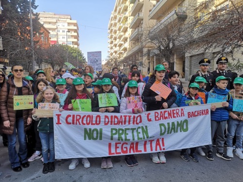 Quasi 80 sono state le adesioni pervenute da scuole di ogni ordine e grado, amministrazioni locali, associazioni e movimenti. Tante adesioni a dimostrazione di una memoria condivisa e di una diffusa consapevolezza che le nuove mafie sono indebolite dal contrasto dello Stato e dalla coscienza civica del Paese. Tra le testimonianze degli studenti che hanno chiuso sul palco la manifestazione, particolarmente toccante è stata quella di Virginia Pollara, alunna della scuola media di Casteldaccia: il nonno, Salvatore, imprenditore edile, fu ucciso dalla mafia l’11 marzo 1983 per non essersi piegato alle richieste di cosa nostra. “Mi ha insegnato il coraggio, l’onestà – ha detto Virginia – era un uomo perbene, elegante e gentile, che si rifiutava di pagare il pizzo e che ha sempre denunciato la mafia”.