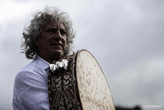 Il maestro del tamburo italiano ha oltre settanta tamburi, tutti fabbricati da sé e meravigliosamente intarsiati con immagini di divinità agresti, segni antichi che racchiudono una saggezza eterna.