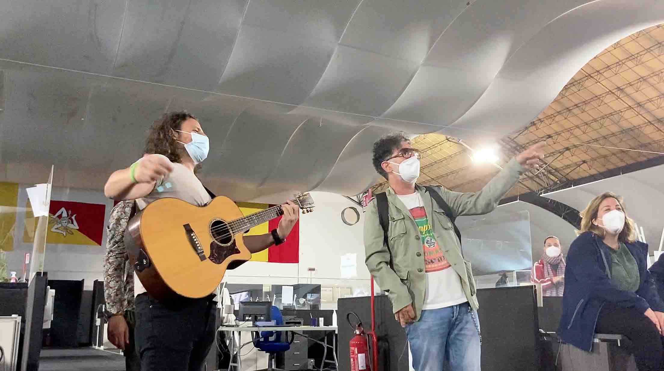 Analfino ha promesso di organizzare presto un concerto e dedicarlo ai lavoratori dell’emergenza sanitaria, quando si potrà. “Avrei voluto farlo già ora – ha aggiunto -: Mario Incudine era stato il primo a dirmi sì, poi Matranga e Minafò, Chris Clun, ma non abbiamo potuto, a causa delle restrizioni”. Ad accompagnarlo, con chitarra e percussioni, Claudio Terzo e Francesco Prestigiacomo, in rappresentanza di tutti i musicisti e dei lavoratori dello spettacolo, tra i più colpiti dalla pandemia.