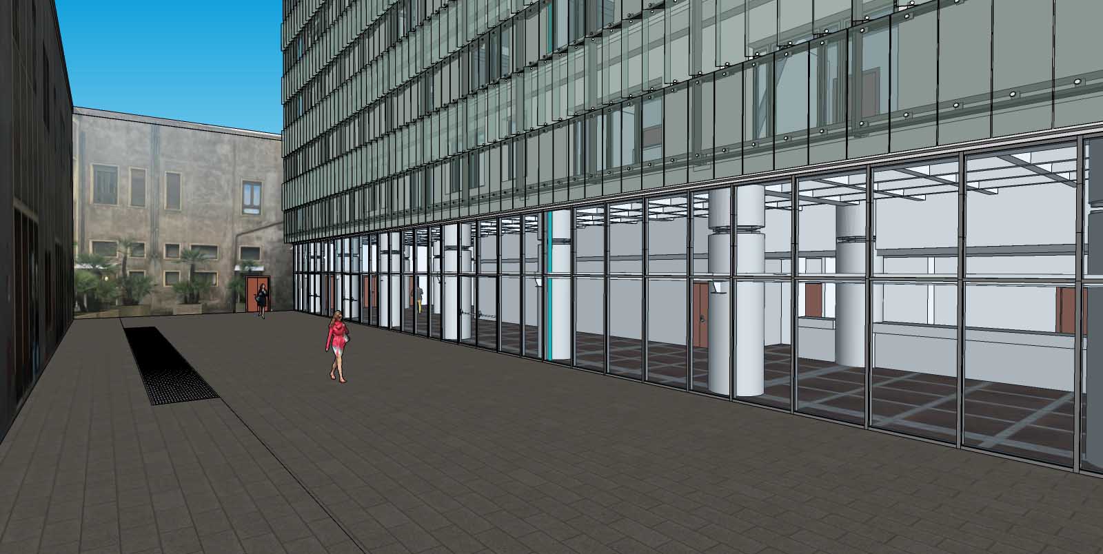 L’intervento edilizio servirà, oltre che a migliorare l’impatto estetico, anche a rendere efficiente energeticamente e sicuro dal punto di vista sismico l’edificio: “l’edificio sarà reso sicuro dal punto di vista sismico, tramite l’inserimento di isolatori e controventature metalliche all’interno della vecchia struttura portante in cemento armato, il rafforzamento dei pilastri, la demolizione di elementi strutturali e non strutturali e la rimozione di impianti obsoleti – si legge. Per quanto riguarda, invece, gli interventi finalizzati al contenimento energetico, l’attuale tetto a falde verrà rimosso e il solaio dell’ultimo piano sarà trasformato in un tetto-giardino calpestabile, corredato da vialetti ed aiuole. Sarà inoltre sostituito completamente l’attuale rivestimento delle facciate in pannelli sandwich in alluminio con un sistema bioclimatico a ‘doppia pelle’ ventilata, per ridurre la dispersione termica, e verranno collocati 168 mq di pannelli fotovoltaici, sia sul tetto-giardino che integrati nella facciata sud”. Prevista anche la rimozione delle barriere architettoniche esistenti.