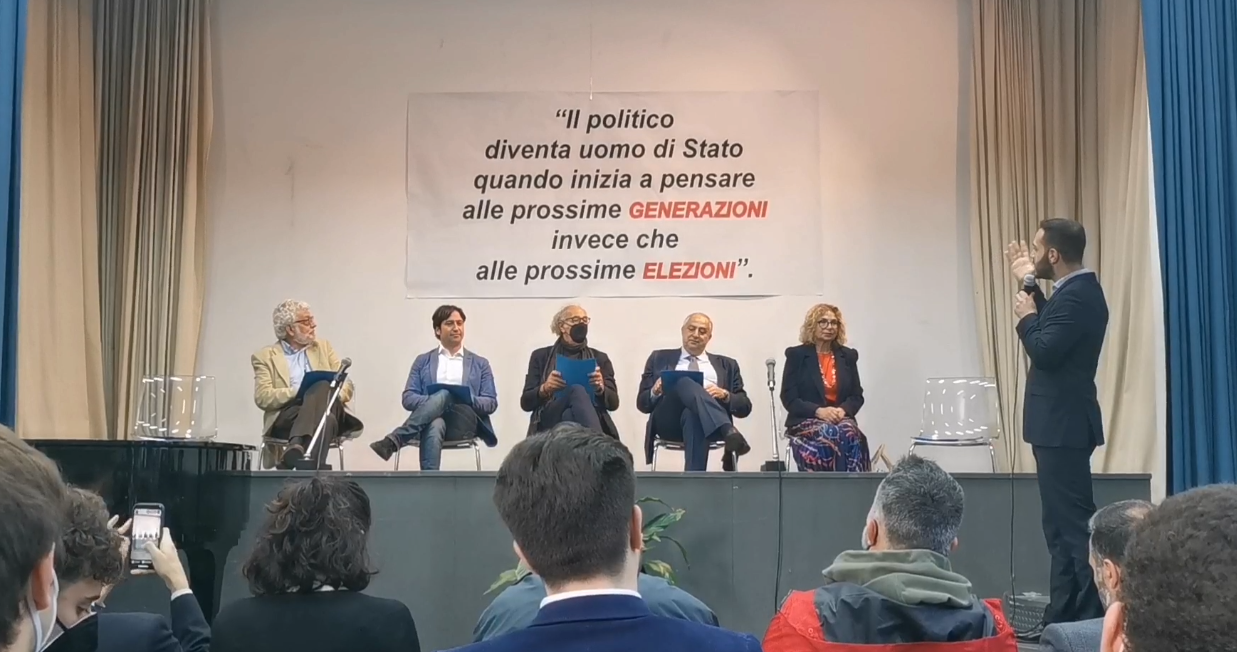 Rita Barbera, Francesca Donato, Fabrizio Ferrandelli, Roberto Lagalla, Ciro Lomonte e Franco Miceli. Unica sedia vuota quella di Giuseppe Catalano. In scena un confronto diretto dai ragazzi del campus.