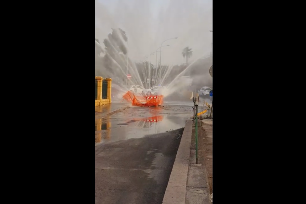 La causa del curioso avvenimento sarebbe stato provocato da un’auto che è finita contro un palo dopo aver travolto una buca recintata per la riparazione di alcuni tubi d’acqua vicino Palazzo Orlèans, sede della Regione Siciliana.