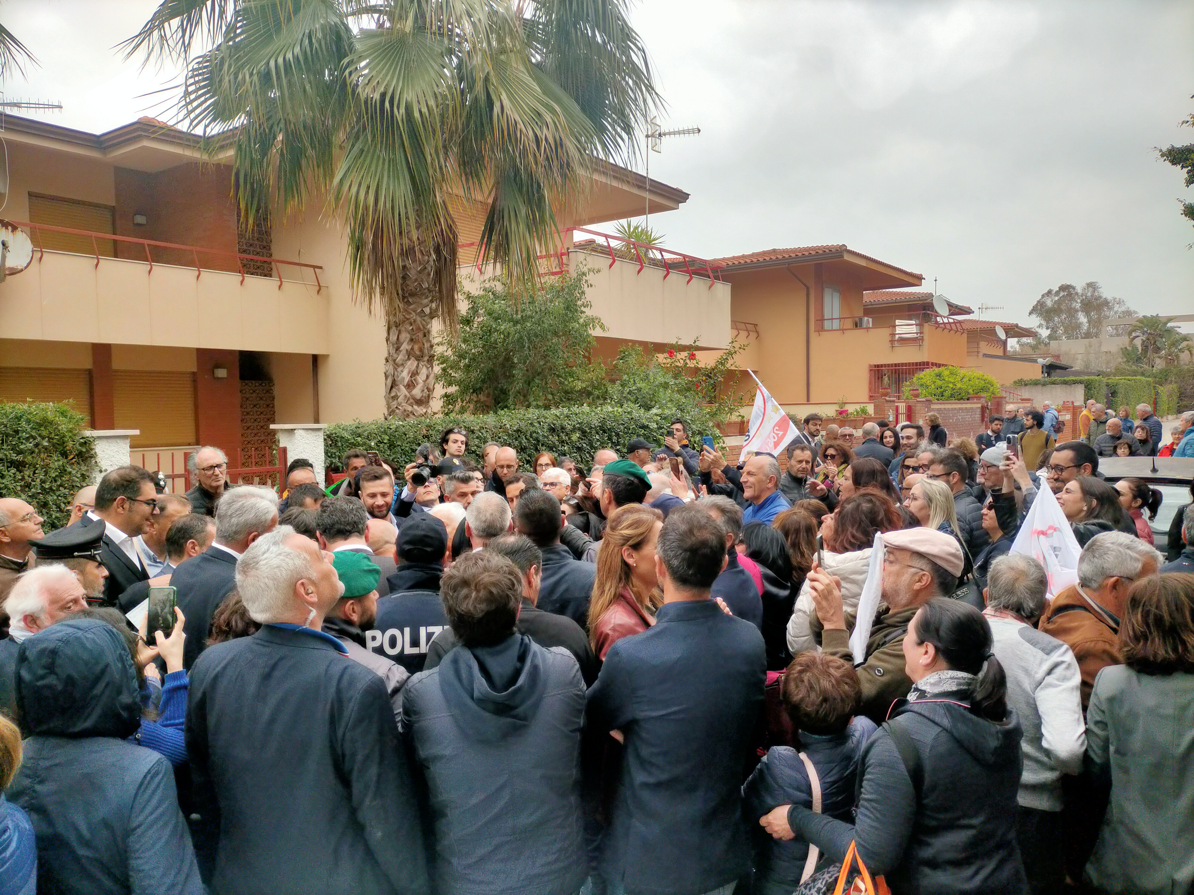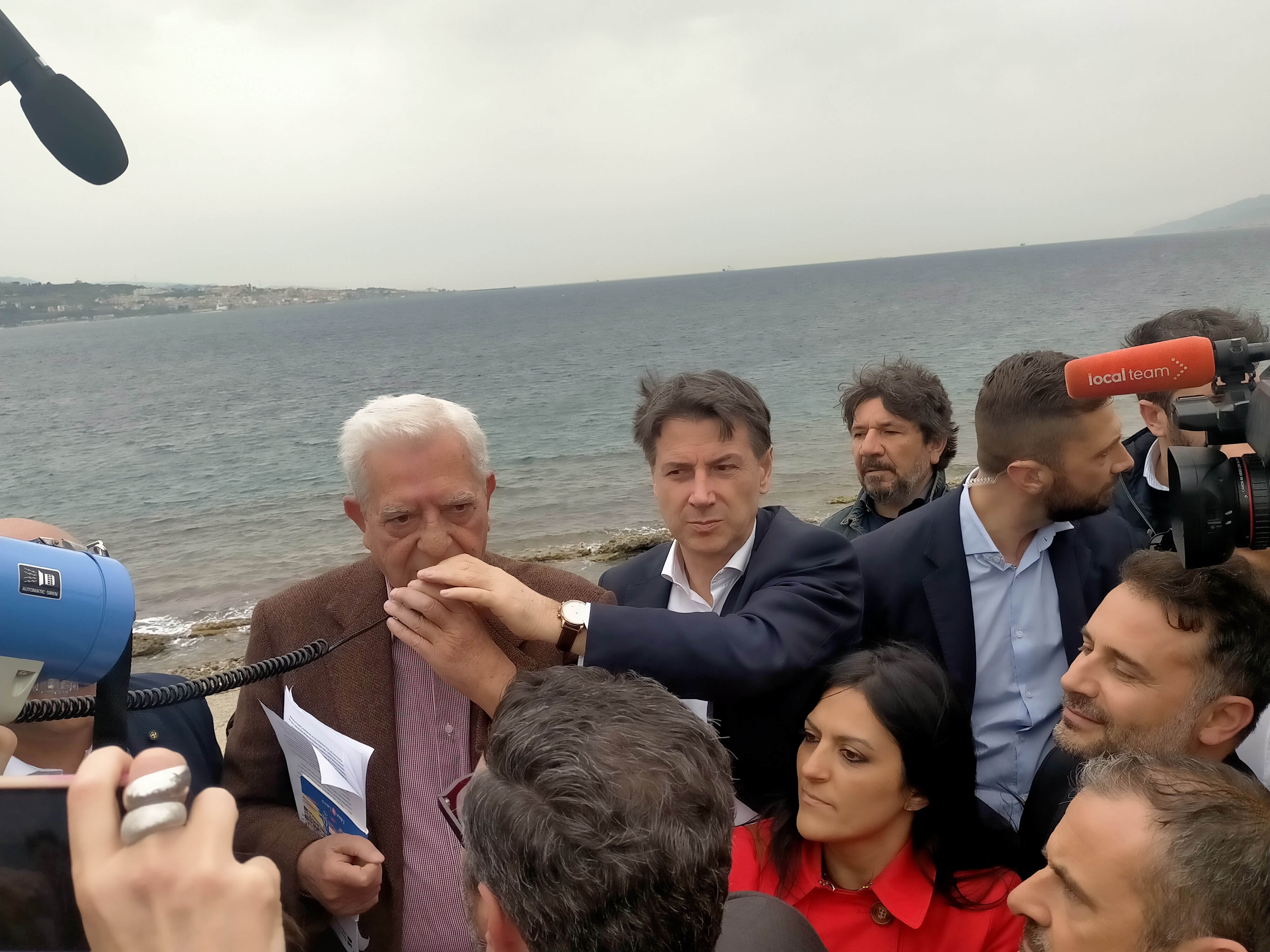 Per chiarire gli aspetti concernenti il progetto definitivo, che dovrà però ancora ricevere l’approvazione da parte del Cipess e delle Commissioni Via – Vas per l’impatto ambientale, ad accompagnare Giuseppe Conte nella sua visita a Capo Peloro, anche l’avvocato Carmelo Briguglio, vicino ai comitati no ponte presenti con bandiere e magliette al seguito. “Se discutiamo nel merito dell’utilità e del risparmio di tempo che si può ottenere facendo il ponte, sappiamo che lo si può raggiungere attraverso altre soluzioni che il precedente governo aveva già codificato, finanziandole con 510 milioni. Fondi che però il ministro Salvini ha fatto sparire”, spiega Briguglio incitato al megafono dalla folla.